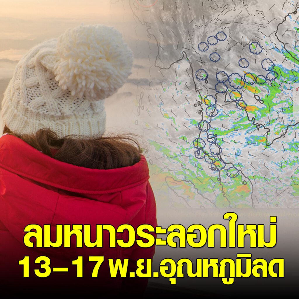 ลมหนาวระลอกใหม่ กรมอุตุฯ เตือน 13–17 พ.ย. ไทยตอนบนอุณหภูมิลด ภาคใต้ยังไม่พ้นฝนหนัก
