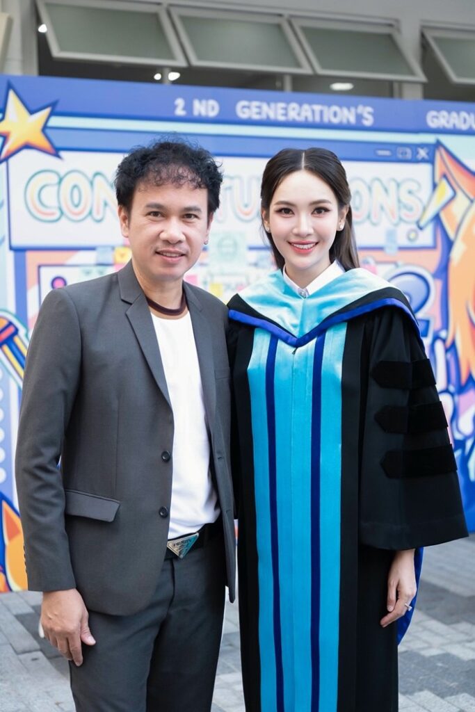 “วันนี้ได้เห็นลูกเรียนจบเป็นดอกเตอร์อย่างที่ตั้งใจ น้องบอกว่านี่คือของขวัญปีใหม่ให้พ่อกับแม่ พ่อดีใจกับเขามาก ขอแค่อยากให้เขามีความสุข ทำงานก็อยากให้มีเวลาพักผ่อนบ้าง เพราะเขาทำงานหนักมาก ทั้งถ่ายละครและร้องเพลง พ่อขอขอบคุณทุกกำลังใจที่มอบให้ลูกสาวพ่อคนนี้ และขอฝากผลงานของลูกด้วยนะครับ”