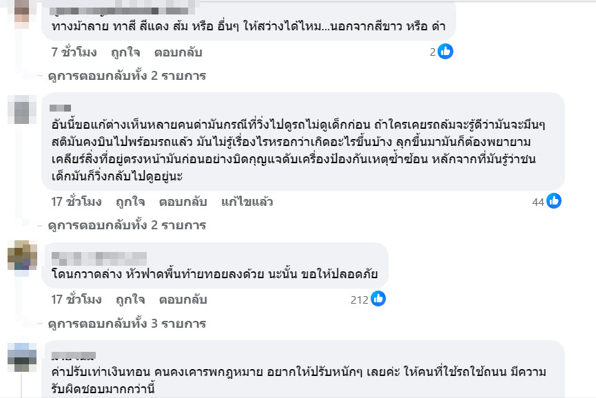 นอกจากนี้ ยังมีข้อเสนอแนะให้หน่วยงานที่เกี่ยวข้องเร่งแก้ไขปัญหาอย่างจริงจัง เช่น การติดตั้งลูกระนาดหรือเนินชะลอความเร็วบริเวณหน้าทางม้าลายทุกจุด เพิ่มป้ายเตือนและสัญญาณไฟให้ชัดเจน เพื่อบังคับให้ผู้ใช้รถลดความเร็วอย่างหลีกเลี่ยงไม่ได้