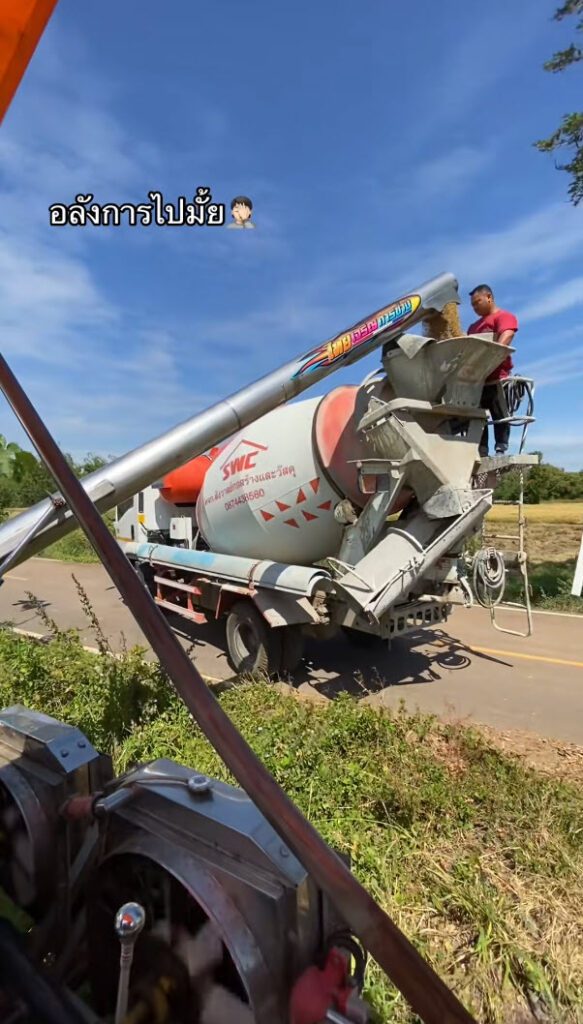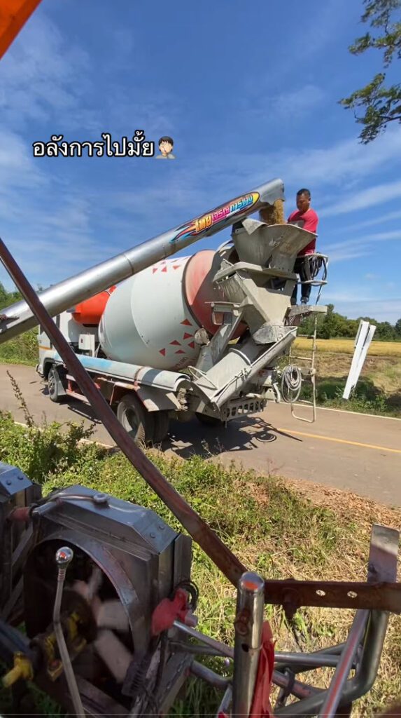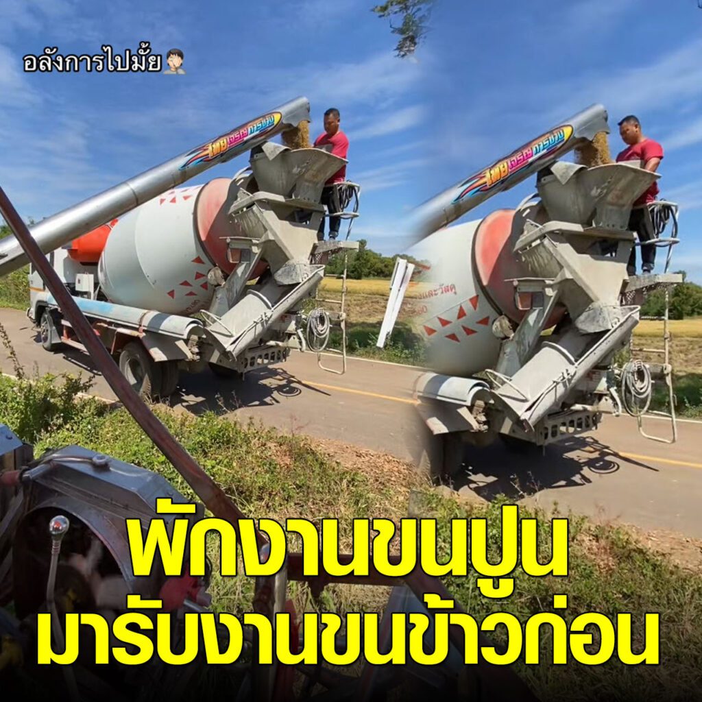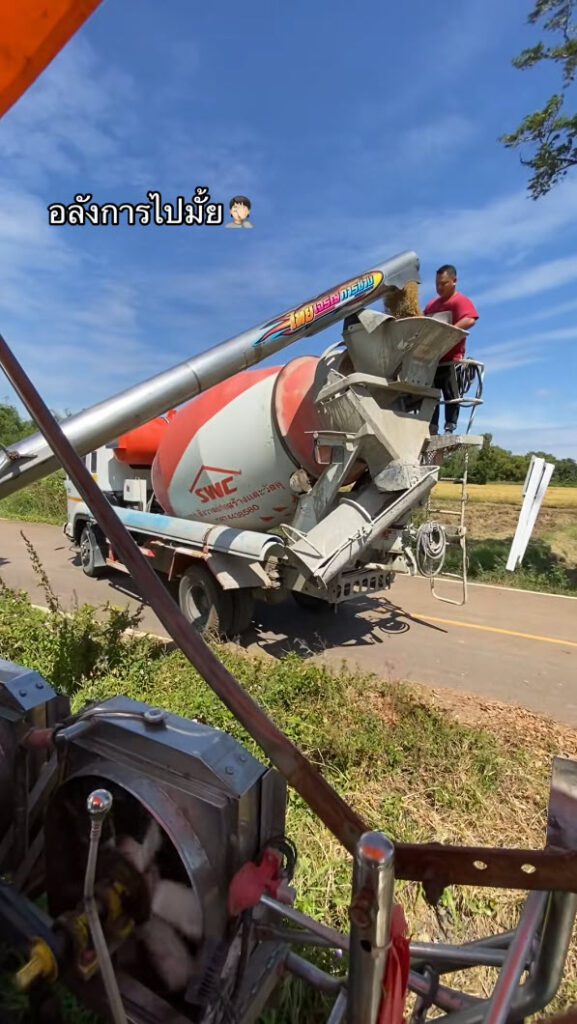 เอารถขนปูนมาขนข้าว พี่ก็สุดเกิน ช่วงนี้งานขนข้าวเยอะ ก็เลยพักงานปูนเอาไว้ก่อน อันนี้ไอเดียดี คิดเป็นคิวๆ เหมือนขนปูนไหม ฮาๆ พร้อมเทตากไปเลย