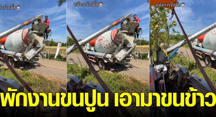 มิติใหม่ รถขนปูนพักก่อนงานก่อสร้าง หันมาขนข้าว พร้อมเทถึงลานตาก