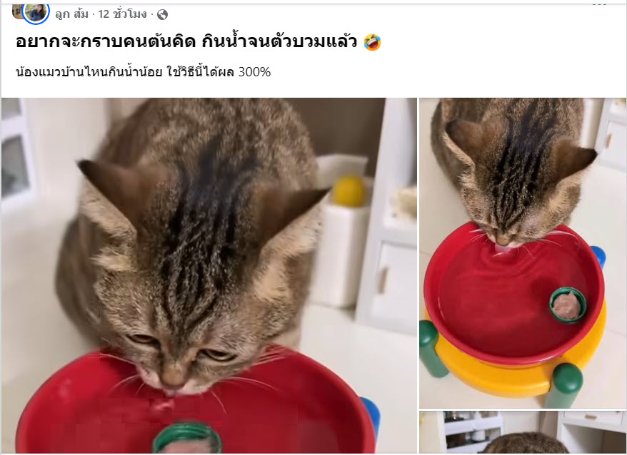 ล่าสุด ทางด้านผู้ใช้เฟสบุ๊ก ลูก ส้ม ได้โพสต์วิดีโอคลิปไอเดียในการแก้ปัญหาน้องแมวกินน้ำน้อย งานนี้บอกเลยว่าหลายคนเห็นแล้วสงสารน้อย แต่เป็นวิธีที่ได้ผลจริง เป็นยังไงนั้นตามไปดู โดยได้โพสต์ระบุว่า…