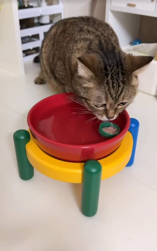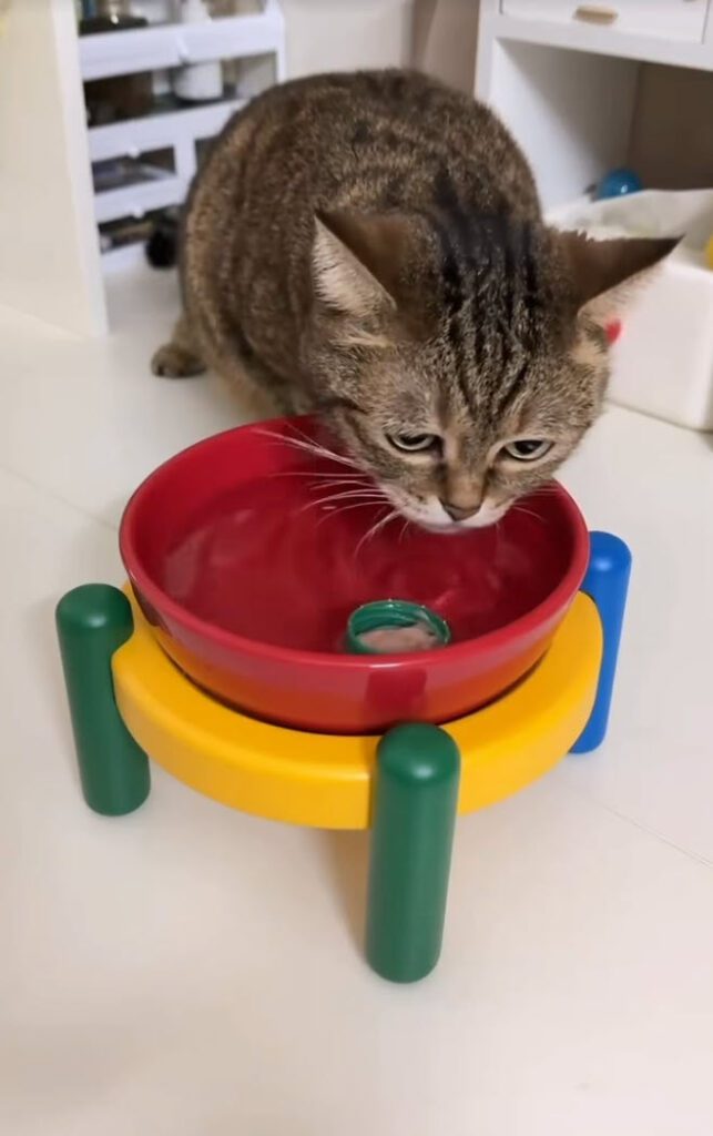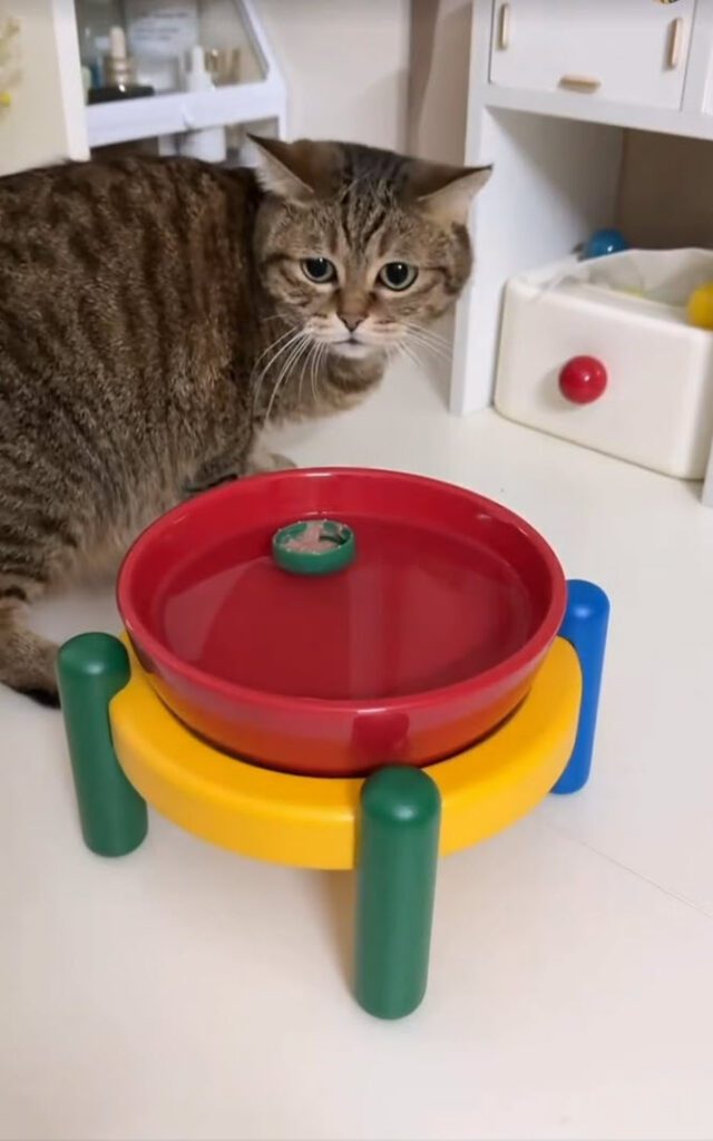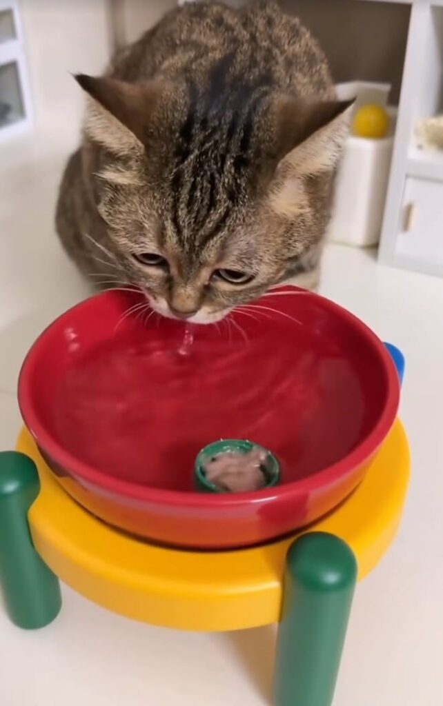 เป็นวิธีที่ต้องบอกเลยว่าอาจจะมีคนเคืองหน่อยๆ สายตาแสดงออกได้ชัดเลย ฮาๆ บ้านไหนที่น้องแมวกินน้ำน้อย ลองเอาวิธีนี้ไปลองกันได้ อาจจะได้ผล