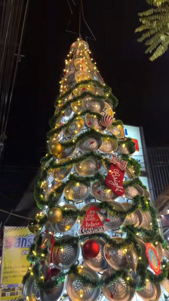 ล่าสุด ทางด้านผู้ใช้ TikTok @mmy1942 ได้โพสต์วิดีโอคลิปต้นคริสต์มาส แบบไม่เหมือนใคร เป็นต้นคริสต์มาสกระทะหมูกระทะ ร้านหมูกระทะเอากระทะมาทำเป็นต้นคริสต์มาส โดยได้โพสต์ระบุว่า…