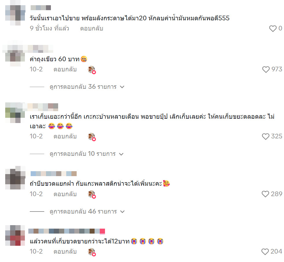 ล่าสุด ทางด้านผู้ใช้ TikTok @mamiizomwan ได้โพสต์วิดีโอคลิปเก็บขวดพลาสติกที่บ้าน สะสมมาเรื่อยๆ เต็มถุงแล้วนำไปขาย ครั้งแรกที่ลองเก็บขวดพลาสติกที่บ้านไปขาย ไม่คิดว่าจะขายได้เท่านี้ รู้ว่ากี่บาท ชาวเน็ตถึงกับฮาลั่น โดยได้โพสต์ระบุว่า….