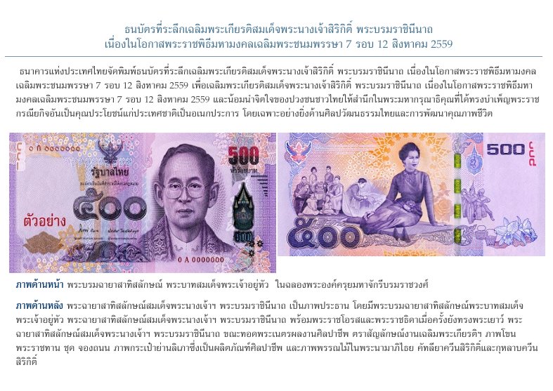 วันที่ 29 ตุลาคม 2568 นางธิดารัตน์ มีศรี อายุ 47 ปี ชาวจังหวัดสุราษฎร์ธานี เปิดเผยว่า ตนสะสมธนบัตรชนิดละ 500 บาท รุ่นที่ด้านหน้าเป็นพระบรมฉายาลักษณ์ในหลวงรัชกาลที่ 9 และด้านหลังเป็นพระฉายาลักษณ์สมเด็จพระพันปีหลวง รวมแล้วกว่า 30 ฉบับ ซึ่งทั้งหมดเก็บรักษาไว้อย่างดี ไม่เคยนำออกมาใช้ในชีวิตประจำวัน