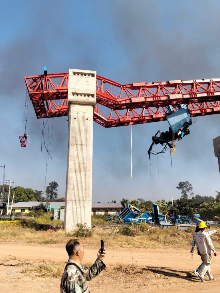 เครนก่อสร้างสะพานรถไฟความเร็วสูงถล่มลงมาทับขบวนรถไฟโดยสาร