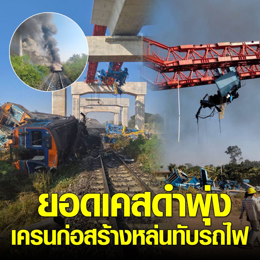 ด่วน! เครนก่อสร้าง หล่นทับขบวนรถไฟด่วนพิเศษ กรุงเทพฯ–อุบลฯ ยอดเคสดำพุ่ง