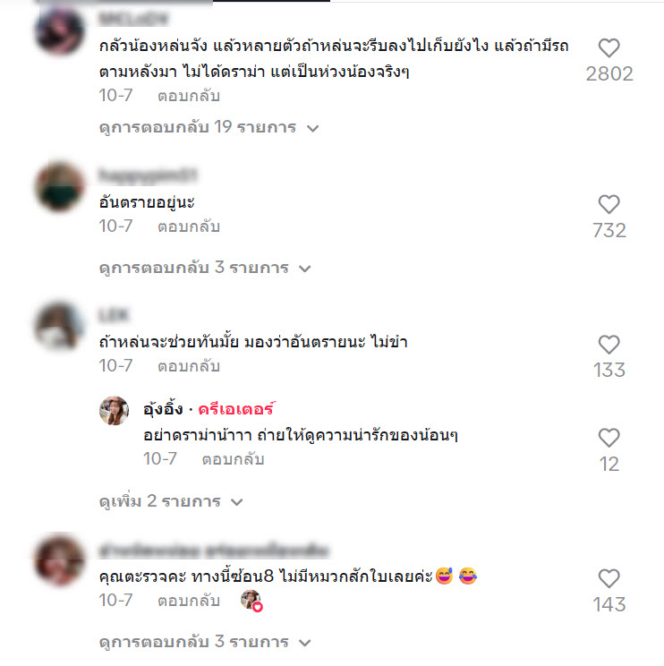 กลัวน้องหล่นจัง แล้วหลายตัวถ้าหล่นจะรีบลงไปเก็บยังไง แล้วถ้ามีรถตามหลังมา ไม่ได้ดราม่า แต่เป็นห่วงน้องจริงๆ