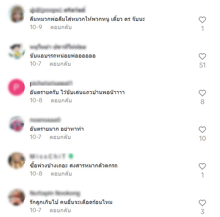 น่ารักมากๆ แต่ชาวเน็ตเห็นแล้วก็อดห่วงไม่ได้ เป็นน้องหมาตัวเล็กด้วยถ้าตกรถอาจจะเป็นอันตรายได้ คุณพ่อต้องระวังด้วยนะ เซฟตี้ด้วยนะ เพื่อความปลอดภัยของน้องๆ