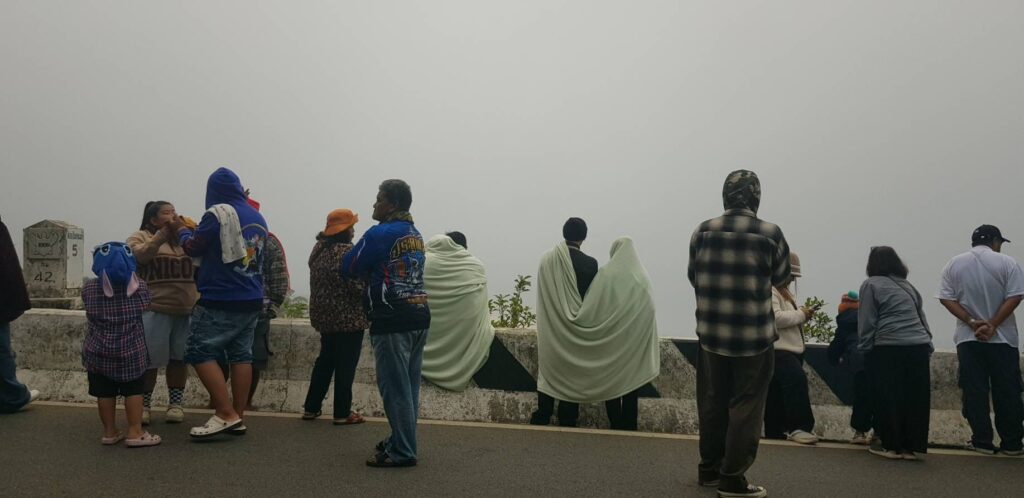 สภาพอากาศบนดอยปกคลุมด้วยหมอกหนา อากาศหนาวเย็นตั้งแต่ช่วงเช้ามืด นักท่องเที่ยวจำนวนมากขึ้นไปสัมผัส “หนาวแรกของปี” กันอย่างคึกคัก ซึ่งถือเป็นสัญญาณเปิดฤดูกาลท่องเที่ยวภาคเหนืออย่างเต็มรูปแบบ