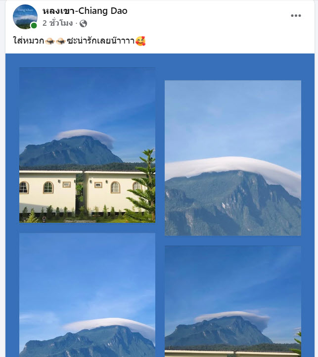 ล่าสุด ทางด้านเพจเฟสบุ๊ก หลงเขา-Chiang Dao ได้โพสต์ภาพเช้านี้ ดอยหลวงเชียงดาว ใส่หมวกน่ารัก จะเห็นวิวเป็นก้อนเมฆที่กำลังปกคลุมยอดดอยหลวงเชียงดาว เหมือนกับดอยหลวงกำลังใส่หมวก โดยได้โพสต์ระบุว่า…
