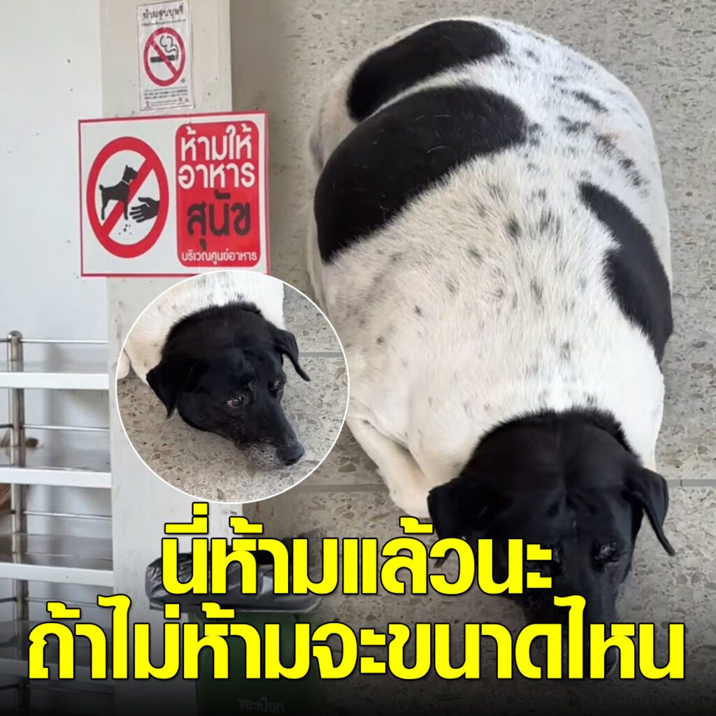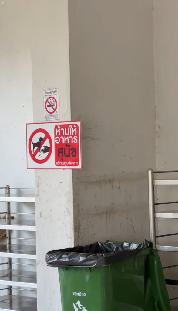 มีป้ายติดไว้อย่างชัดเจนว่าห้ามให้อาหารสุนัข บริเวณศูนย์อาหาร