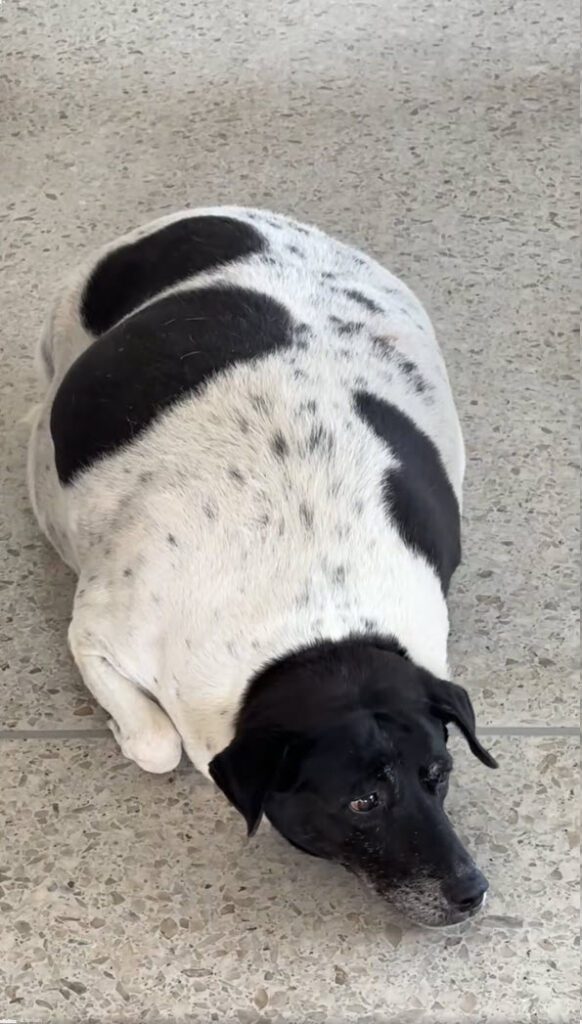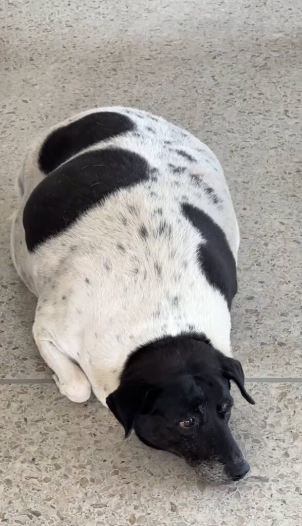 เห็นป้ายและเห็นสิ่งที่อยู่ตรงหน้าคงจะเข้าใจแล้วว่าทำไมถึงไม่อยากให้ให้อาหารสุนัข เพราะว่าน่าจะให้มาเยอะมากแล้ว ฮาๆ ตัวอ้วนกลมมาก เป็นหมูเลย