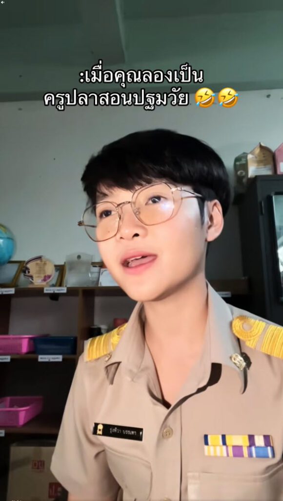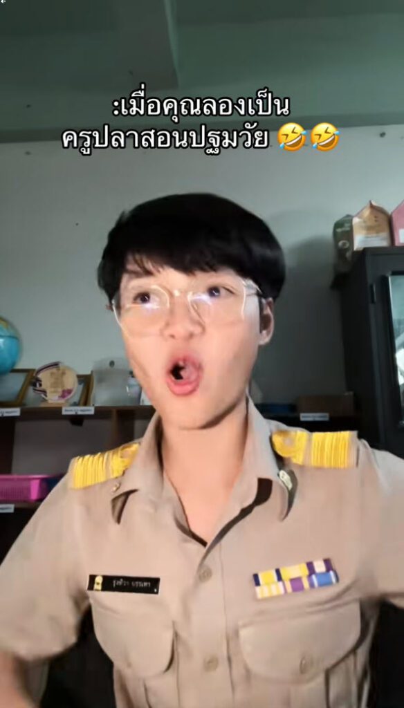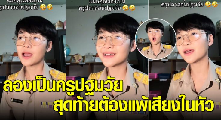 ล่าสุด ทางด้านผู้ใช้ TikTok @ เป็นคุณครูเหมือนกัน แต่ไม่ใช่ครูปฐมวัยหรือครูอนุบาล ลองฝึกเป็นครูปฐมวัยดู พูดช้าๆ ชัดๆ ใจเย็นๆ แต่สุดท้ายพีคเพราะแพ้เสียงในหัว ทำเอาฮากันทั้งโซเชียล โดยได้โพสต์ระบุว่า…