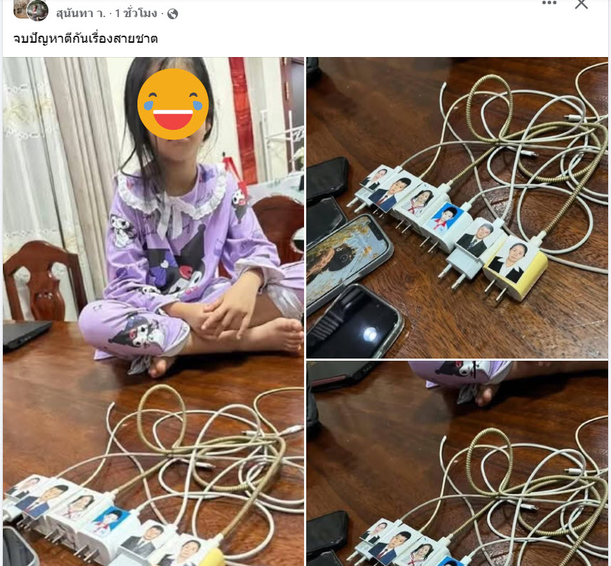 ล่าสุด ทางด้านผู้ใช้เฟสบุ๊ก สุนันทา า. ได้โพสต์วิธีในการแก้ไขปัญหาเด็กๆ ในบ้านตีกันเรื่องสายชาร์จ รวมไปถึงพ่อแม่ด้วย สมาชิกในครอบครัวทุกคน มีสายชาร์จเป็นของตัวเอง พร้อมกับติดรูปใส่อะแดปเตอร์สายชาร์จ ไม่เถียงกันแน่นอน โดยได้โพสต์ระบุว่า…..