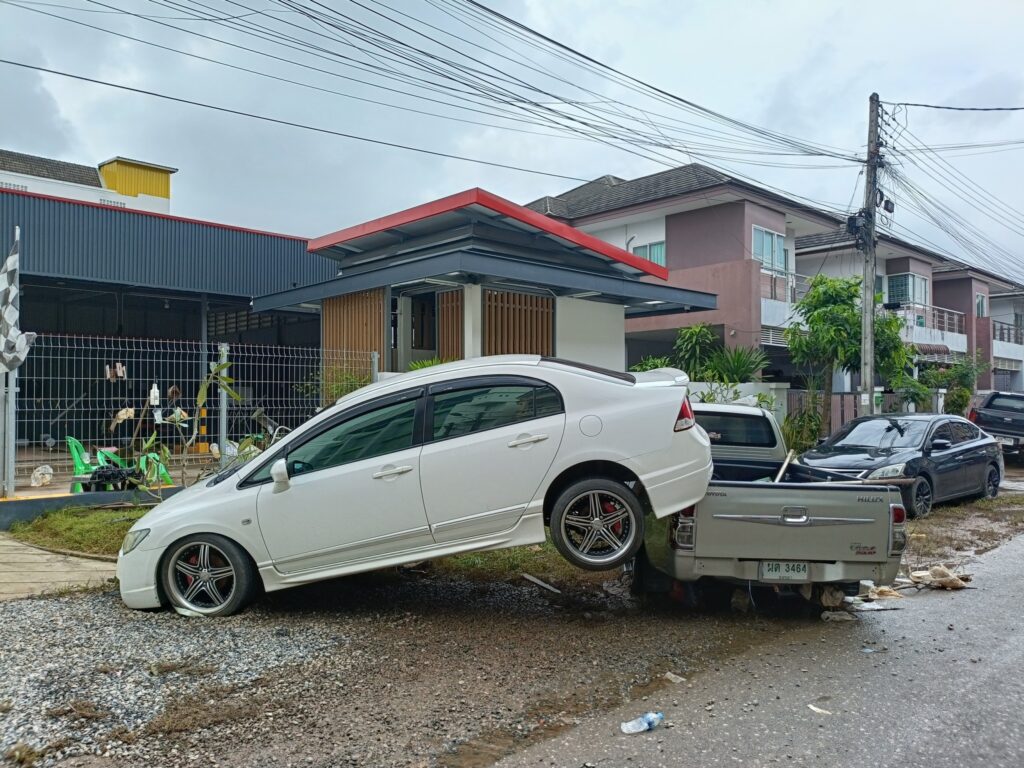 อีกหนึ่งความเสียหายที่พบเป็นจำนวนมากคือ รถยนต์ ไม่ว่าจะเป็นรถจอดตามบ้านหรือย่านชุมชน ต่างได้รับผลกระทบอย่างหนัก บางคันน้ำท่วมถึงหลังคา เครื่องยนต์ แผงวงจร และระบบไฟฟ้าได้รับความเสียหาย