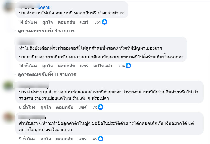 ทรงนี้คือชอบรสชาติอาหารร้านตัวเองเลยสั่งบ่อย แต่ที่แจ้งรายงานเพราะจะกินฟรีไม่อยากจ่ายเงิน แจ้งปุ๊บ grab ก็คืนยอด ร้านโดนหักเงินทั้งที่ไม่ผิดแต่ลูกค่าหัวหมอ = ลูกค้าคือมิจเบาๆ