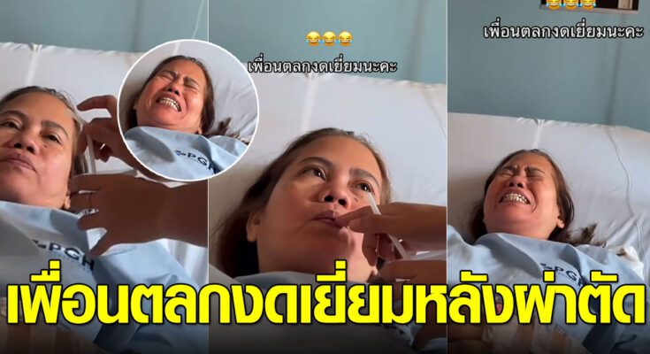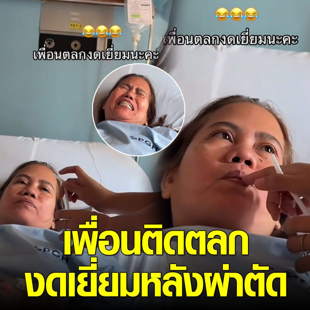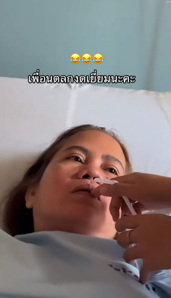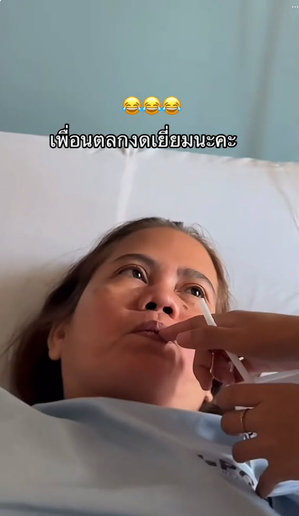 ล่าสุด ทางด้านผู้ใช้ @taewnungruthai ได้โพสต์วิดีโอคลิป ไปเยี่ยมเพื่อนหลังผ่าตัด งานนี้เพื่อนเป็นคนตลก กำลังจะเอาน้ำให้ดื่ม เอาหลอดใส่ปากให้ดูด แต่ดันติดตลกเอานิ้วให้เพื่อนดูด งานนี้ฮาก็ฮาไม่ได้แผลจะฉีก พยายามกลั้นเอาไว้ เป็นยังไงนั้นตามไปดู