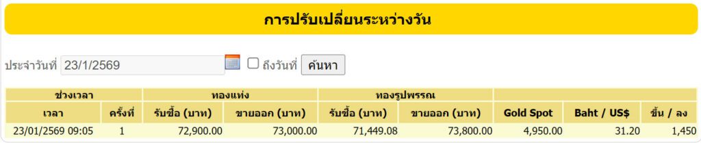 ราคาทองตามประกาศช่วงเช้า (23 ม.ค. 2569 เวลา 09:05 น.)