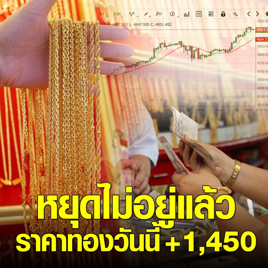 หยุดไม่อยู่แล้ว ราคาทองวันนี้ 23 ม.ค.69 พุ่งแรงทะลุโลก +1,450 บาท