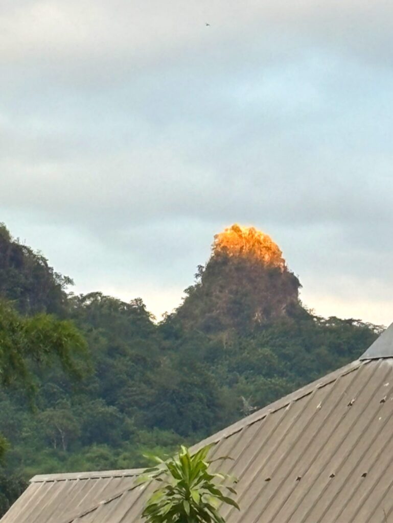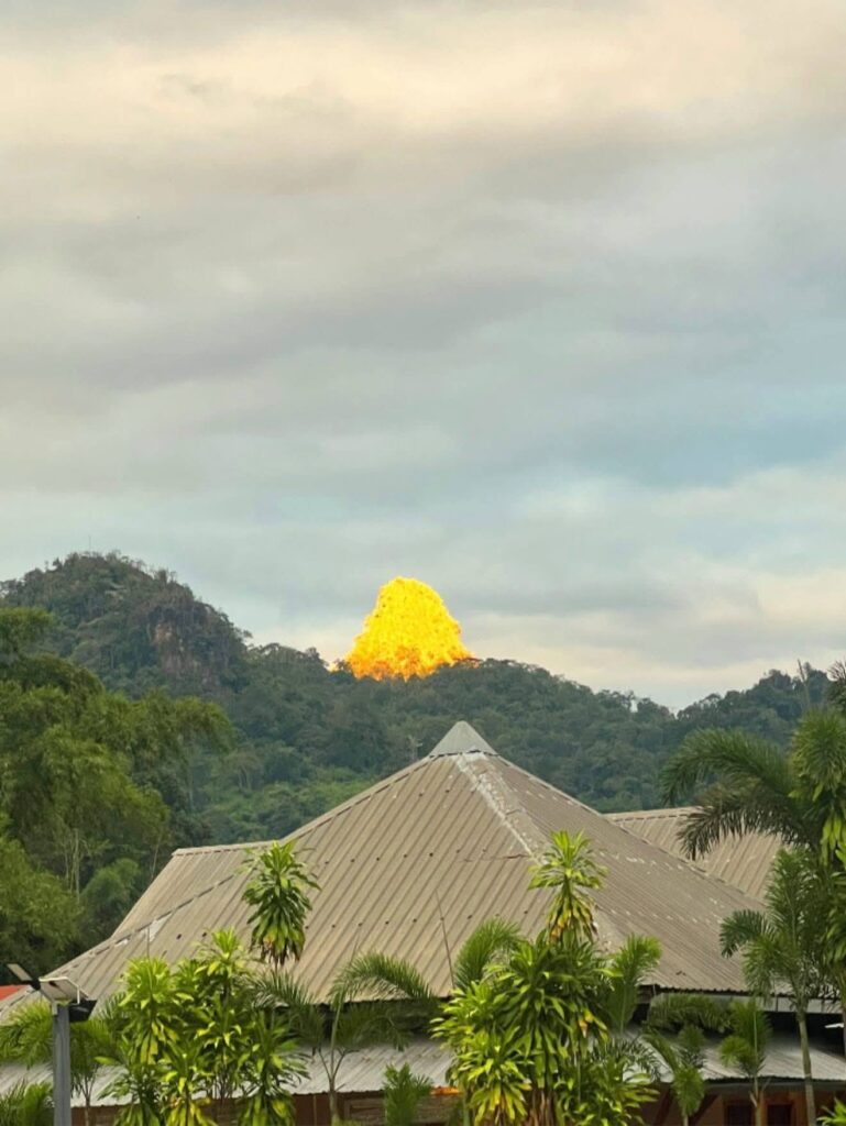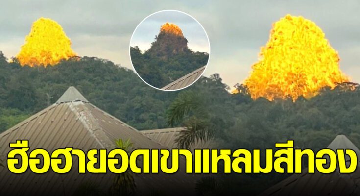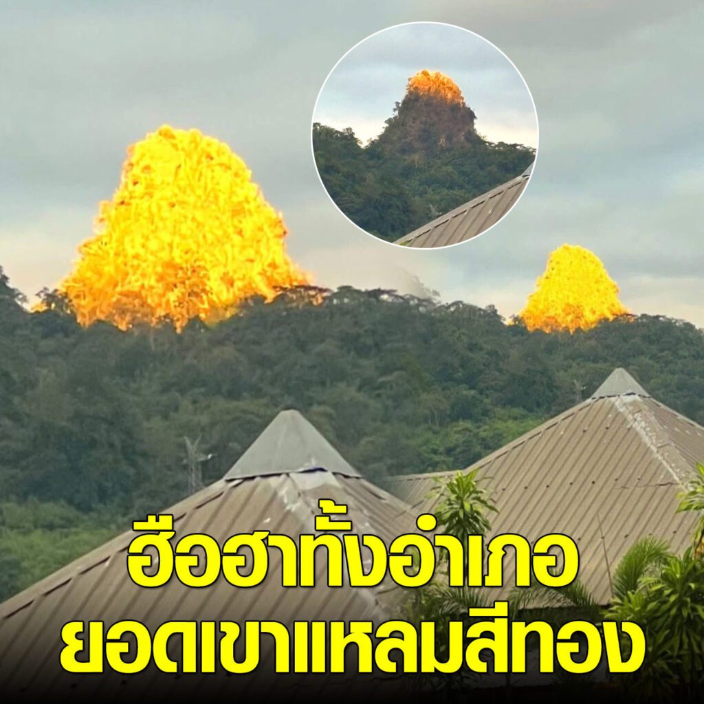 กลายเป็นกระแสฮือฮาทั้งในพื้นที่และบนโลกออนไลน์ หลังชาวบ้านและนักท่องเที่ยวในอำเภอทองผาภูมิ จังหวัดกาญจนบุรี พบปรากฏการณ์สุดประหลาด เมื่อ “ยอดเขาแหลม” เปล่งแสงสีทองสว่างไสวกลางป่าเขาในยามเย็น ราวกับภูเขาเรืองแสง