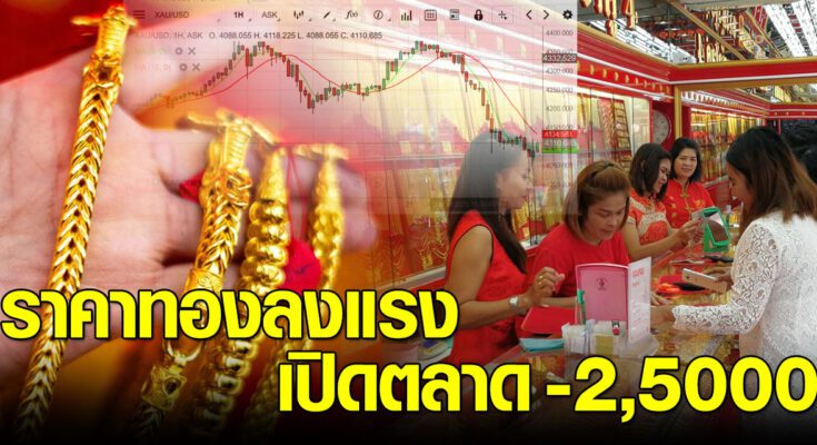 สมาคมค้าทองคำประกาศราคาทองคำครั้งที่ 1 ประจำวันที่ 22 ตุลาคม 2568 เวลา 09.07 น. โดยราคาทองคำในประเทศปรับลดลง บาทละ 2,500 บาท เมื่อเทียบกับราคาปิดตลาดเมื่อวานนี้