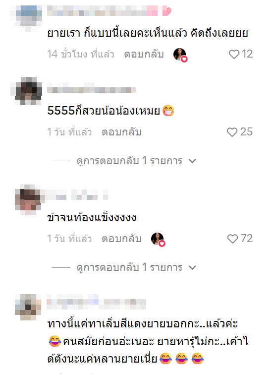 คุณยายถึงกับแพ้เสียงในหัวเลย ฮาๆ ก็มันคนละสมัย ยุคคุณยายแต่งตัวกันเรียบร้อย ไม่ได้โชว์แบบนี้ แบบนี้สมัยคุณยายเขาว่าเป็นกะ…เลยแหละถ้าแต่งแบบนี ฮาๆ แต่สมัยนี้เขาใส่กันเป็นเรื่องปกติแล้ว เมื่อคนโบราณ กับคนสมัยใหม่มาเจอกัน ฮาๆ น่ารัก