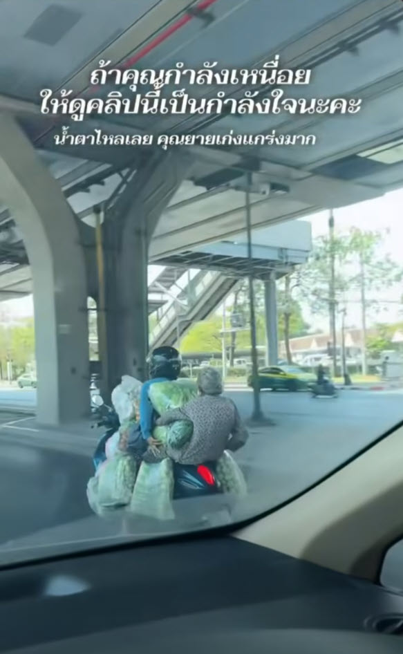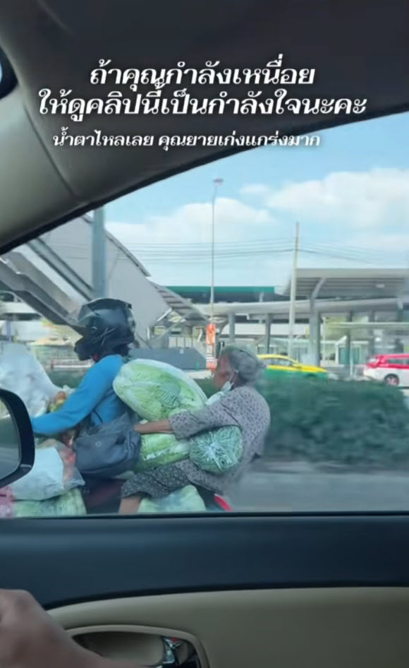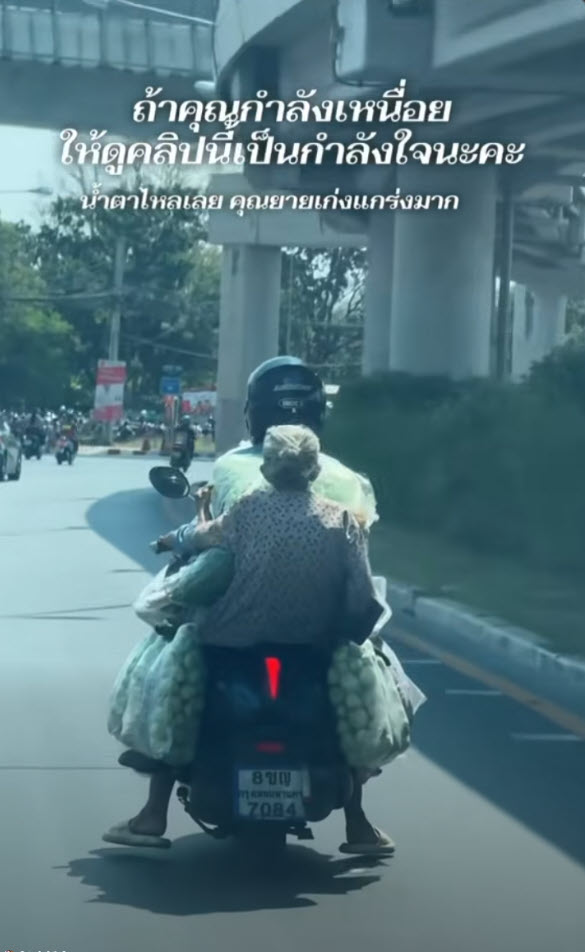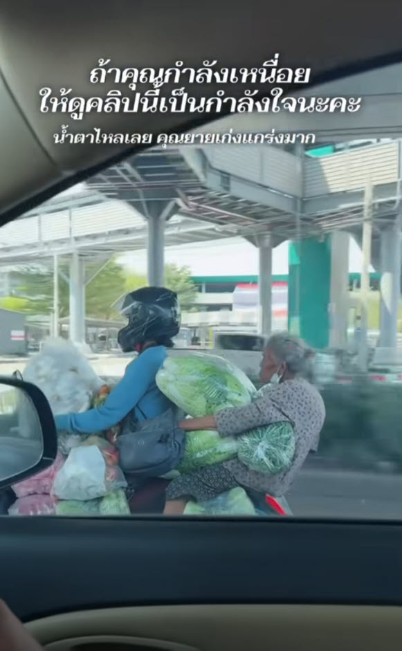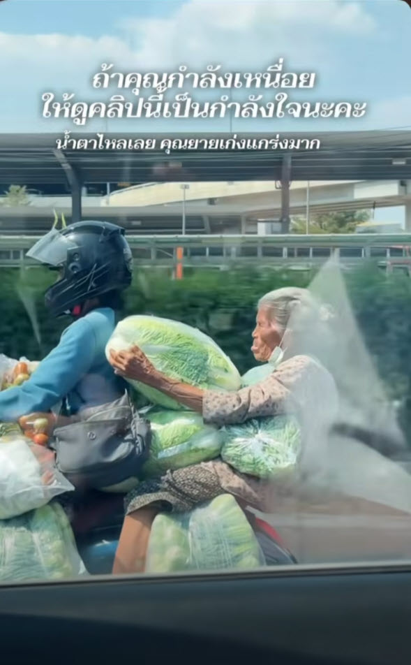 แค่คลิปสั้น ๆ แต่สะกิดใจแรง คุณยายนั่งซ้อนมอไซค์ขนผักจนตัวงอ แล้วเราจะท้อไปทำไม