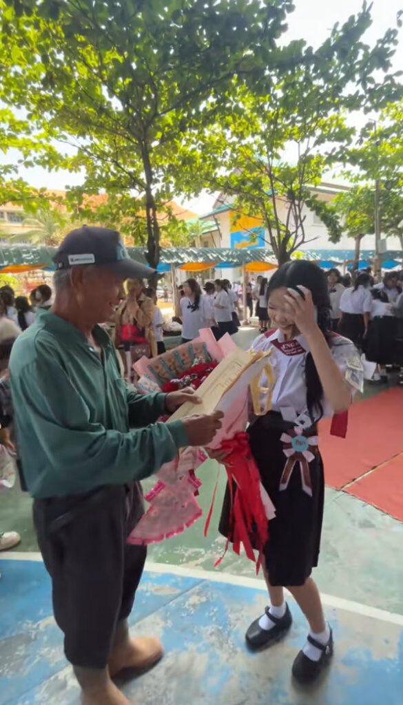ล่าสุด ทางด้านผู้ใช้ TikTok @deenanarakk ได้โพสต์วิดีโอคลิปเมื่อคุณแม่กับตา มาร่วมแสดงความยินดีกับหลานในวันปัจฉิมนิเทศ คุณตาทุ่มสุดตัวของขวัญให้หลาน เอาโฉนดที่ดินมาให้เลย เป็นยังไงนั้นตามไปดู