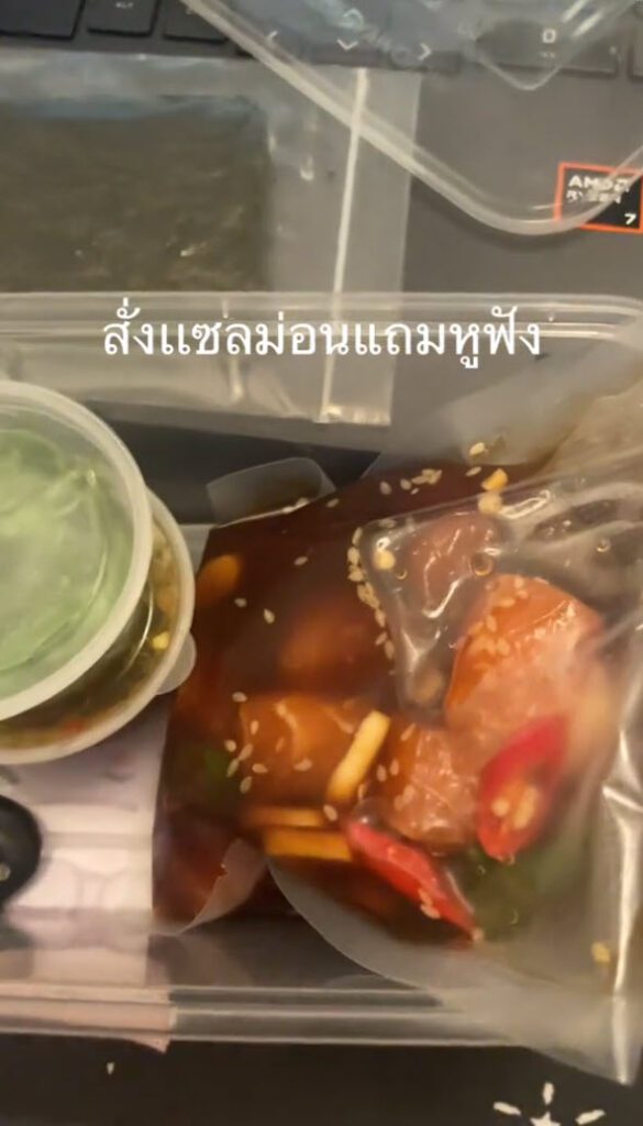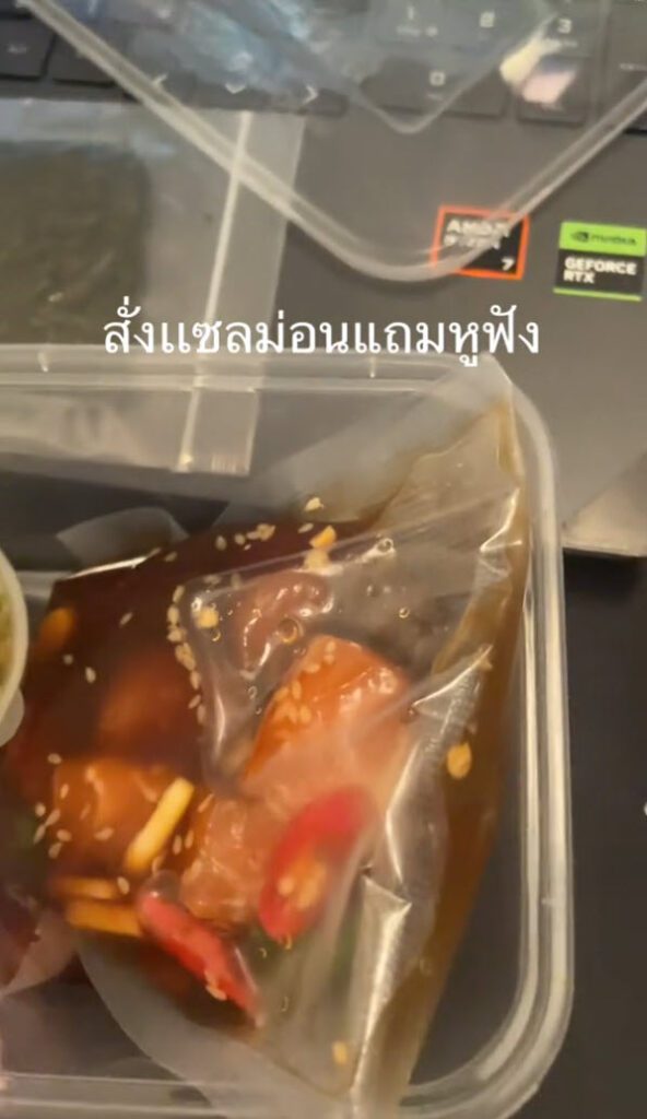 ล่าสุด ทางด้านผู้ใช้ TikTok @@a1m_xypn ได้โพสต์วิดีโอคลิปสั่งแซลมอนดองมากิน แล้วพอเปิดกล่องออกมามีของแถมมาด้วย มันคือหูฟัง แม่ค้าทำหล่นลงมาในกล่องหรอ ปานนี้คงจะหาให้วุ่น โดยได้โพสต์ระบุว่า..