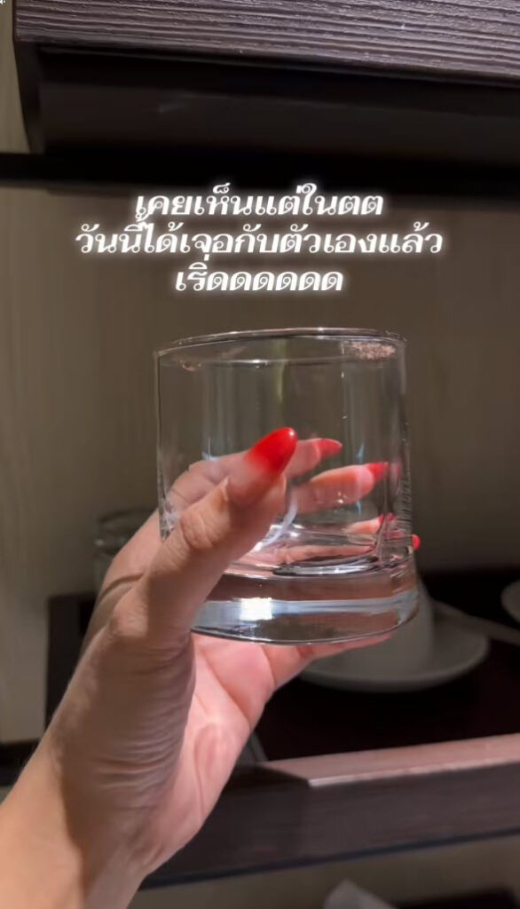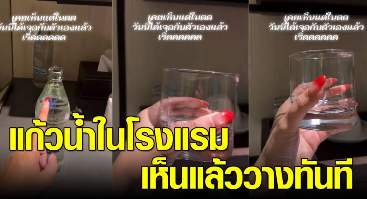 ล่าสุด ทางด้านผู้ใช้ TikTok @lookpla0686 ได้เข้าพักโรงแรมแห่งหนึ่ง เปิดขวดน้ำกำลังจะหยิบแก้วมาเทน้ำดื่ม พอเห็นที่ขอบแก้วน้ำเท่านั้นแหละถึงกับรีบวาง เพราะว่ามีรอยลิปสติกติดอยู่บนขอบแก้ว แสดงว่าพนักงานโรงแรมไม่ทำความสะอาด โดยได้โพสต์ระบุว่า…