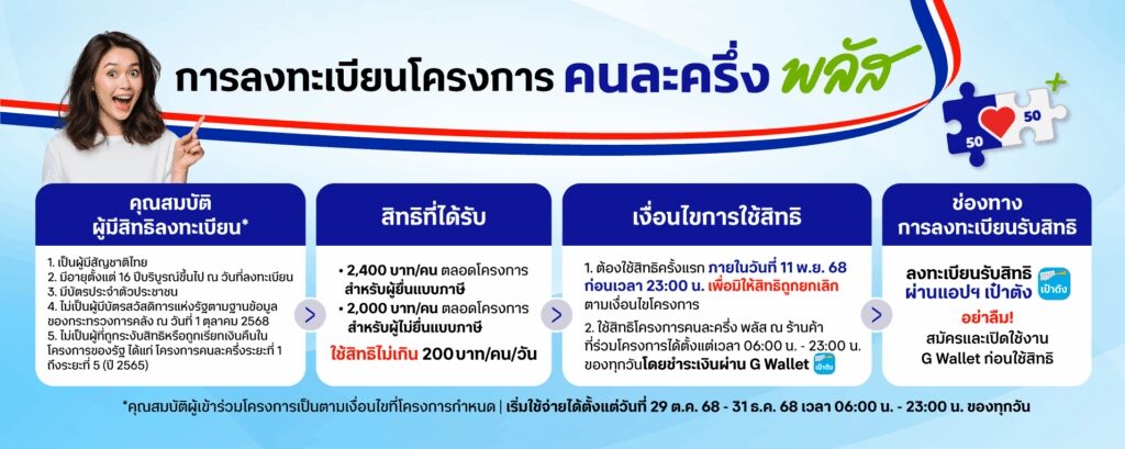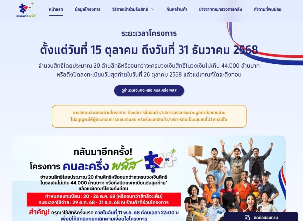 ลงทะเบียนคนละครึ่งพลัส วันที่ 20 ต.ค.นี้