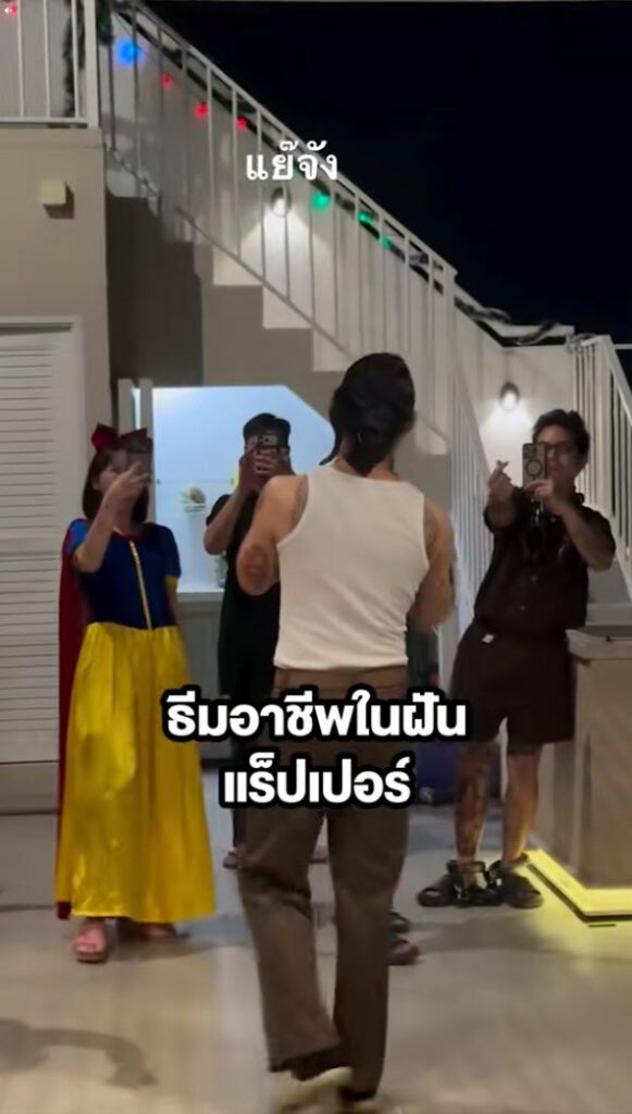 ล่าสุด ทางด้านผู้ใช้ TikTok @kuafalcao_9 ได้โพสต์วิดีโอคลิปงานเลี้ยงบริษัท แต่ตัวธีมอาชีพในฝัน ใครอยากเป็นอะไร ก็ให้แต่งตัวมาได้อย่างเต็มที่เรา หนุ่มคนหนึ่งอยากเป็นแรปเปอร์ชื่อดัง ยังโอม จัดเต็มมาเลย พร้อมกับร้องเพลง ใจฉันตามเธอไป งานนี้ฮากันทั้งงาน แย่จังทั้งคืน โดยได้โพสต์ระบุว่า…