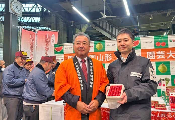 ขณะเดียวกัน ที่เมืองเท็นโด จังหวัดยามางาตะ ซึ่งเป็นแหล่งผลิตเชอร์รี่ที่ใหญ่ที่สุดของประเทศ การประมูลก็สร้างสถิติใหม่ของท้องถิ่นเช่นกัน โดยเชอร์รี่ 1 กล่อง บรรจุ 68 ลูก ถูกจำหน่ายในราคาสูงถึง 1.55 ล้านเยน หรือเกือบ 310,000 บาท สะท้อนถึงชื่อเสียงของยามางาตะในฐานะแหล่งเชอร์รี่คุณภาพระดับโลก
