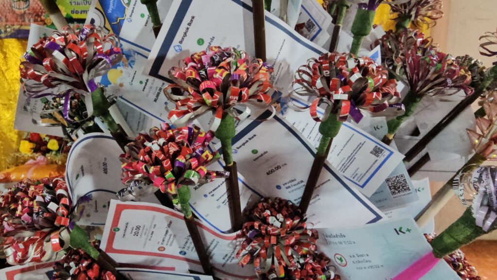 ทุกป้ายมีการติดคิวอาร์โค้ดและเลขบัญชีของวัดไว้อย่างชัดเจน เพื่อให้ผู้มีจิตศรัทธาสามารถร่วมบุญได้สะดวก ไม่ว่าจะอยู่ใกล้หรือไกล ต่างพากันมาเช็กอิน ถ่ายรูป และสแกนคิวอาร์โค้ดร่วมบุญกันอย่างคึกคัก