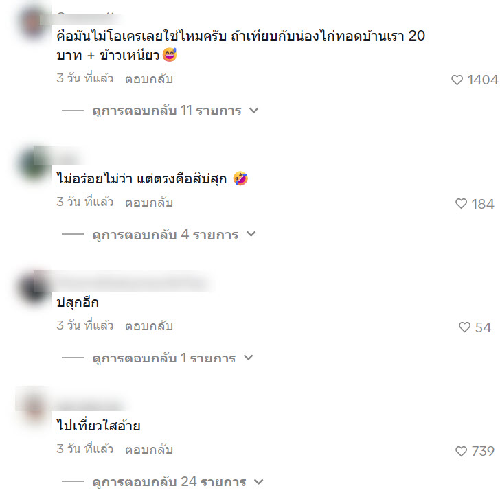 คือมันไม่โอเคเลยใช่ไหมครับ ถ้าเทียบกับน่องไก่ทอดบ้านเรา 20 บาท + ข้าวเหนียว
