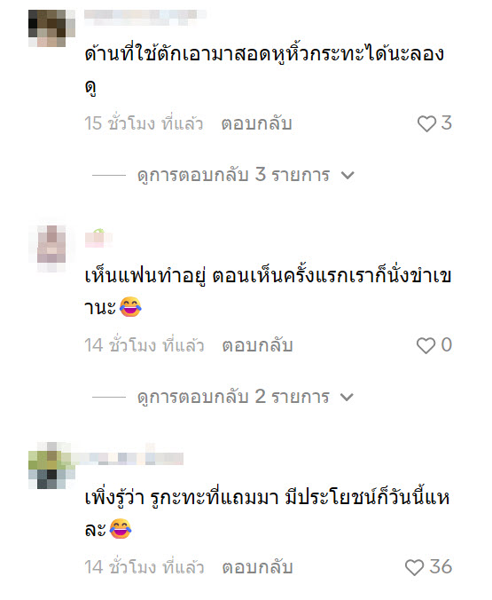 เจ้าของคลิประบุแคปชั่นสั้น ๆ แต่โดนใจว่า “เกิดมา 25 ปี เพิ่งรู้วันนี้” ซึ่งตรงกับความรู้สึกของผู้ชมจำนวนมาก เพราะปกติแล้ว เวลาใช้ทัพพี คนส่วนใหญ่มักจะต้องหาจานรอง หาแท่นวาง หรือวางพาดขอบหม้อให้เสี่ยงหล่นและเลอะเทอะอยู่เสมอ