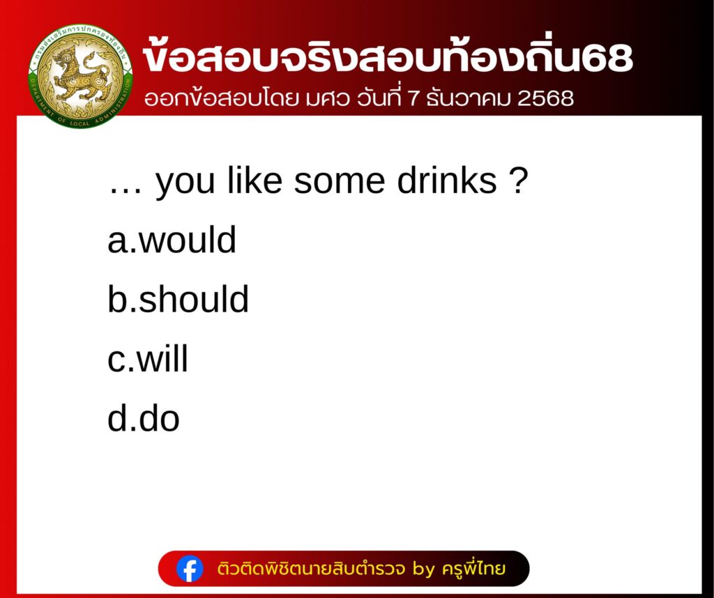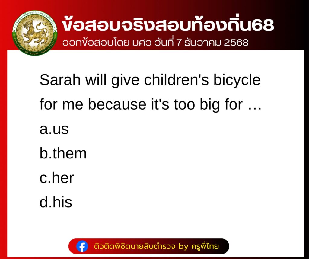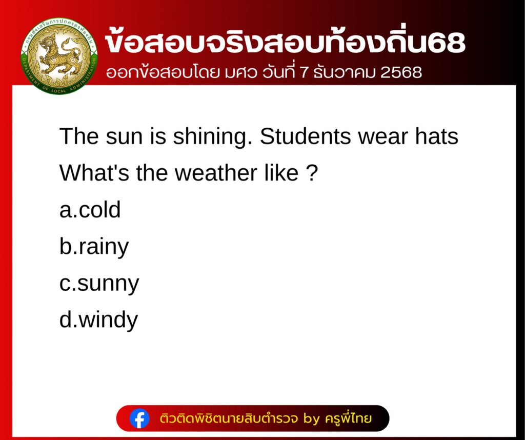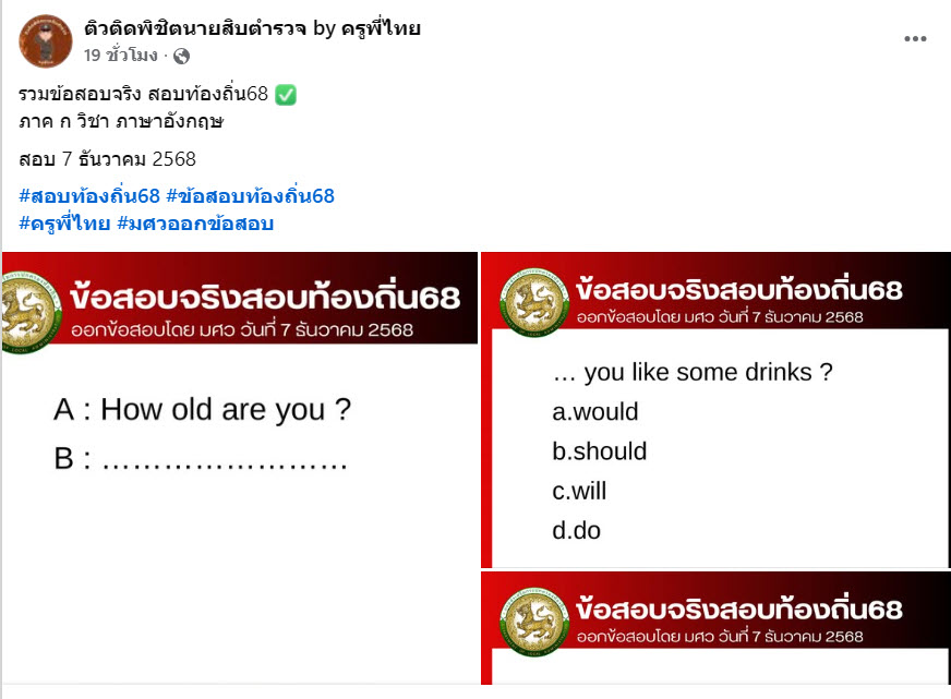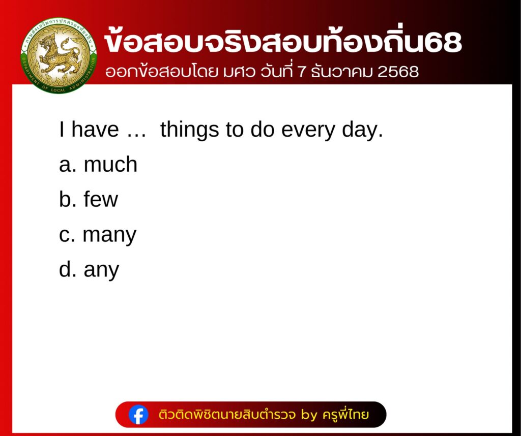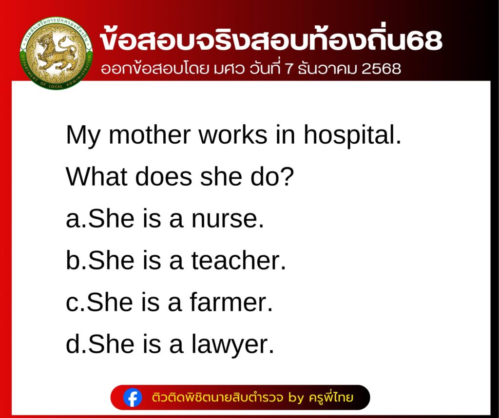 ล่าสุด ทางด้านเพจเฟสบุ๊ก  ติวติดพิชิตนายสิบตำรวจ by ครูพี่ไทย ได้รวบรวมข้อสอบ บรรจุเป็นพนักงานส่วนท้องถิ่น ประจำปี 2568 ภาค ก วิชา ภาษาอังกฤษ บอกเลยว่าหลายคนเห็นข้อสอบแล้ว แทบไม่อยากเชื่อว่าจะออกง่ายขนาดนี้ โดยได้โพสต์ระบุว่า…