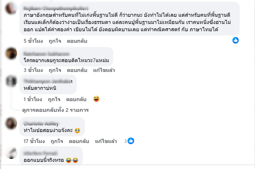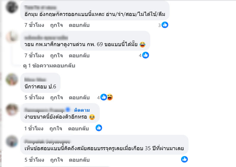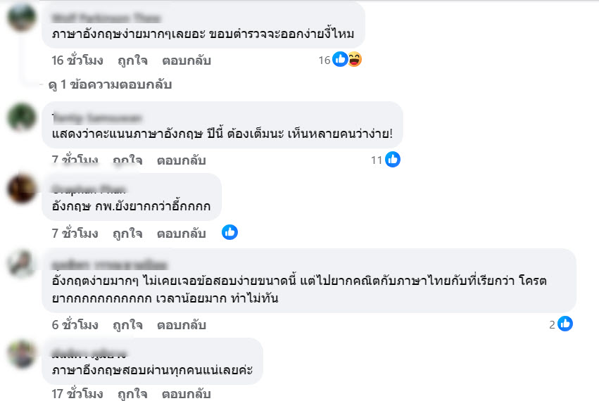 ชาวเน็ตหลายคนแสดงความคิดเห็นว่าข้อสอบท้อง ภาค ก วิชา ภาษาอังกฤษ ปีนี้ออกง่ายเกินคาดมากๆ หลายคนอ่านแล้วตอบได้ทันทีเลย เหมือนข้อสอบเด็กระดับประถม หลายคนก็มองว่าออกประมาณนี้ถูกแล้ว ภาษาอังกฤษสำหรับคนที่ไม่เก่งพืันฐานไม่ดี
