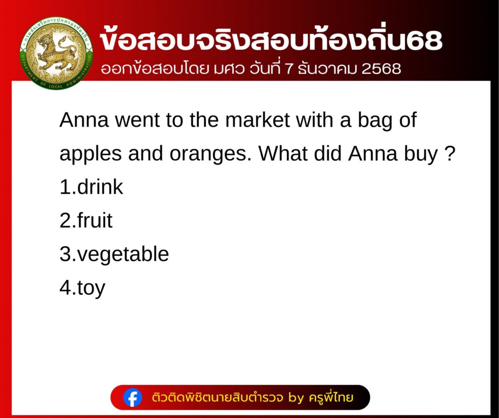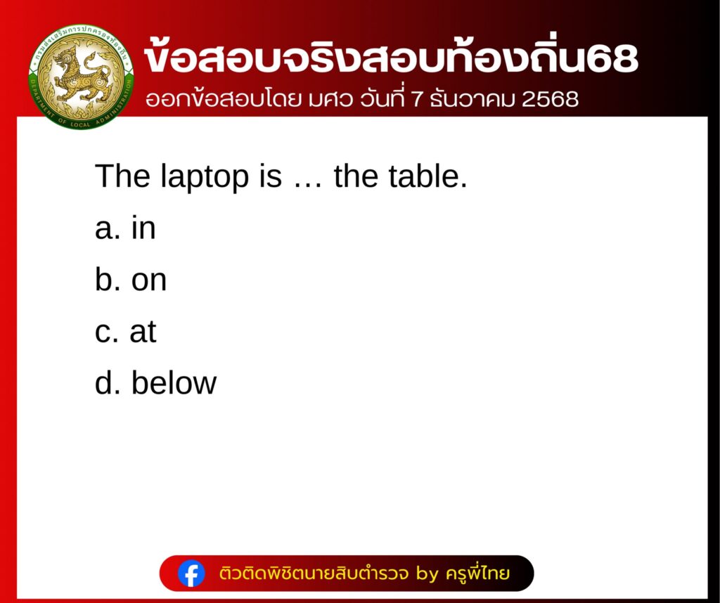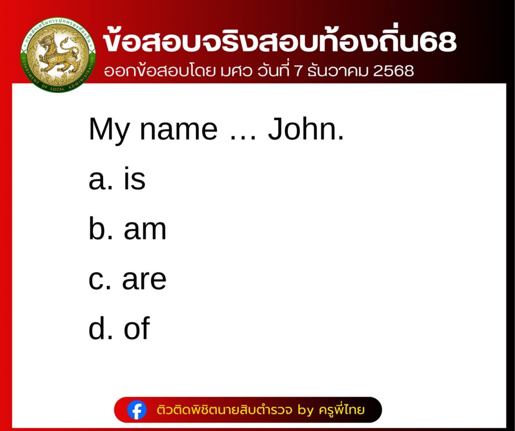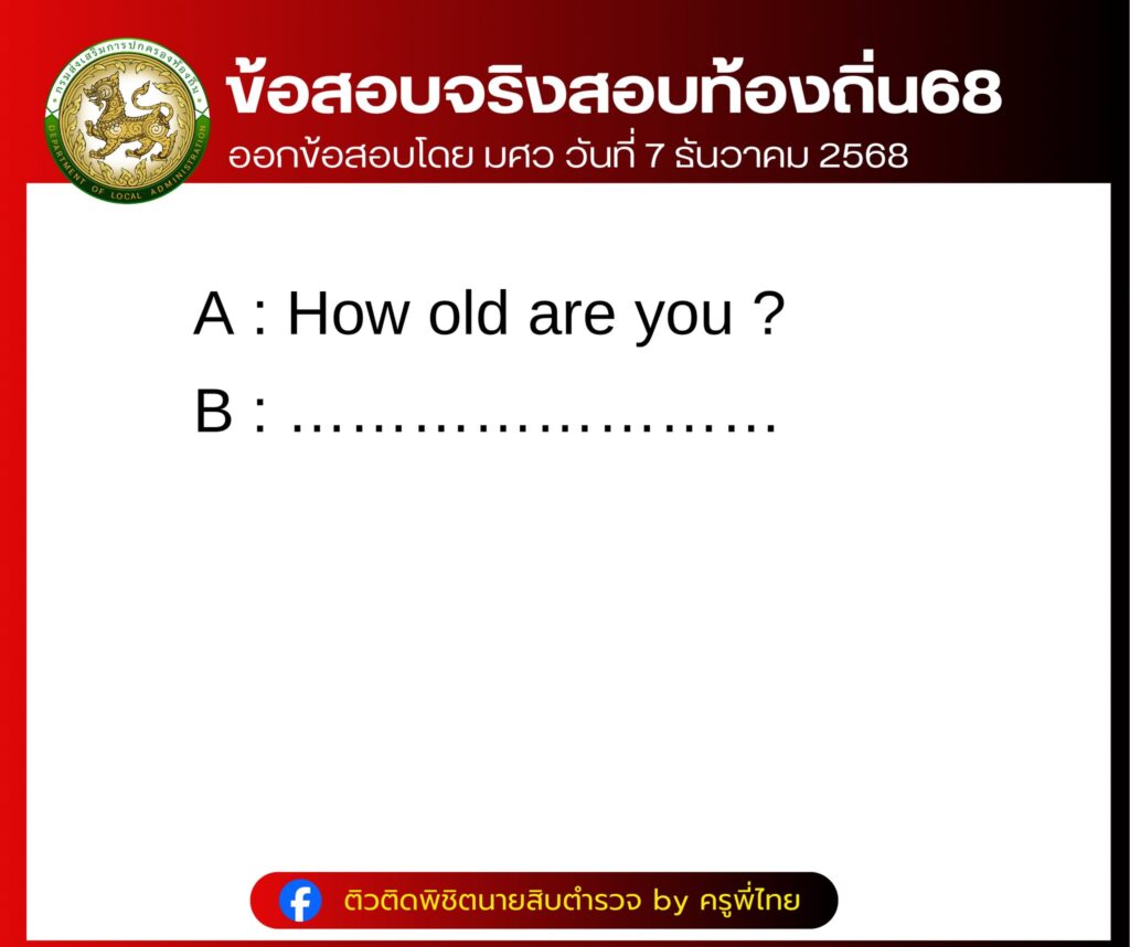 รวมข้อสอบจริง สอบท้องถิ่น68 ภาค ก วิชา ภาษาอังกฤษ สอบ 7 ธันวาคม 2568