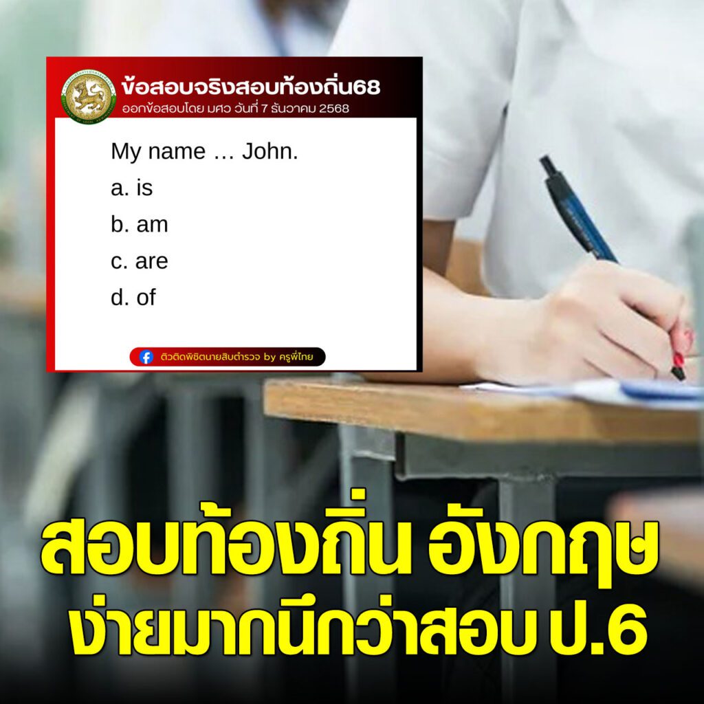 ไม่เคยเจอข้อสอบง่ายขนาดนี้ สอบท้องถิ่น ภาษาอังกฤษ นึกว่าข้อสอบ ป.6