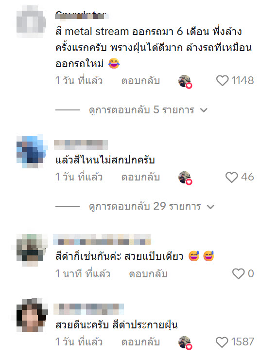ล่าสุด ทางด้านผู้ใช้ TikTok @comeon_nuea ได้โพสต์วิดีโอคลิปคิดว่าตัวเองเลือกสีรถผิดแล้วแหละ เพราะว่าเลือกรถสี Metal Stream (เมทัล สตรีม) คือ สีบรอนซ์เงินโทนใหม่ที่มีประกายเมทัลลิก (Metallic) แล้วฝุ่นเกาะเห็นได้ชัดมาก ล้างสะอาดสวยขับแค่วันเดียวฝุ่นเต็มคัน โดยได้โพสต์ระบุว่า…