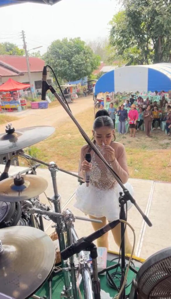 ล่าสุด ทางด้านผู้ใช้เฟสบุ๊ก บิลลี่ สะดิ้งติ้ว มิวสิค เป็นมือกลองวงหมอลำ ไลฟ์สดกำลังเล่นในงานหนึ่งช่วงเวลากลางวัน เริ่มแสดงตั้งแต่ 12.00-17.00 น. ซึ่งอากาศร้อนมาก จนทำให้นักร้องหมอลำสาวเจอลมแดด วูบหมดสติกลางเวที เป็นยังไงนั้นตามไปดู