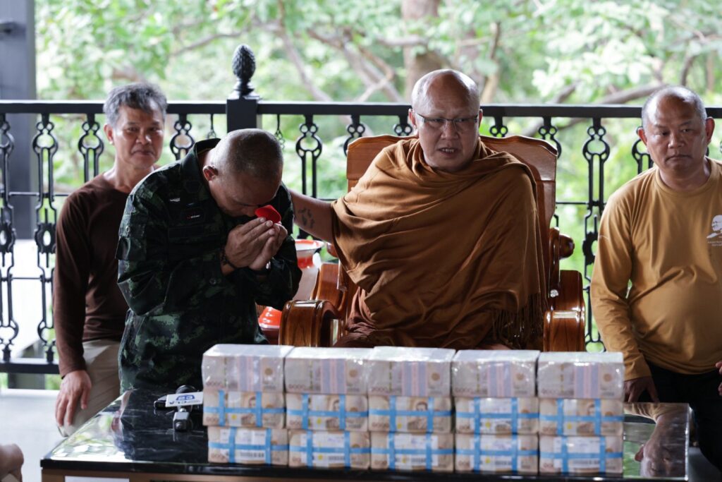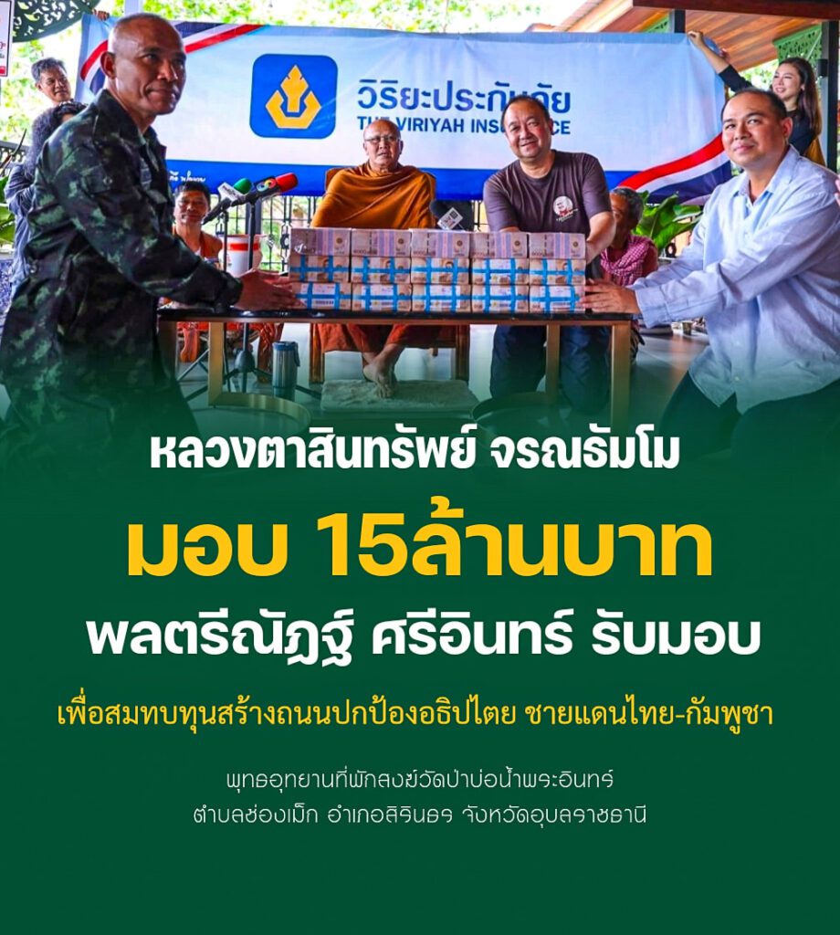 วันที่ 8 ตุลาคม 2568 ที่ผ่านมา พล.ต.ณัฏฐ์ ศรีอินทร์ รองแม่ทัพภาคที่ 2 เดินทางไปรับมอบเงินจำนวน 15 ล้านบาทจาก หลวงตาสินทรัพย์ จรณธัมโม หรือที่ชาวบ้านรู้จักกันในชื่อ พระสิ้นคิด เจ้าอาวาสวัดป่าบ่อน้ำพระอินทร์ จังหวัดอุบลราชธานี