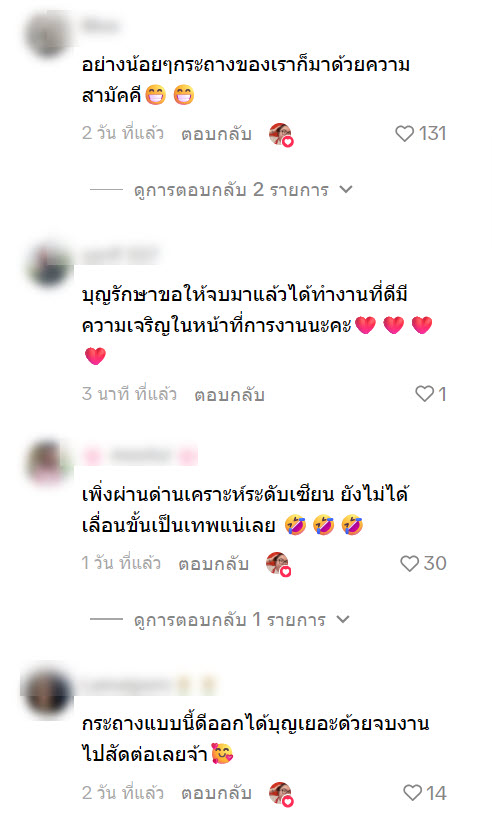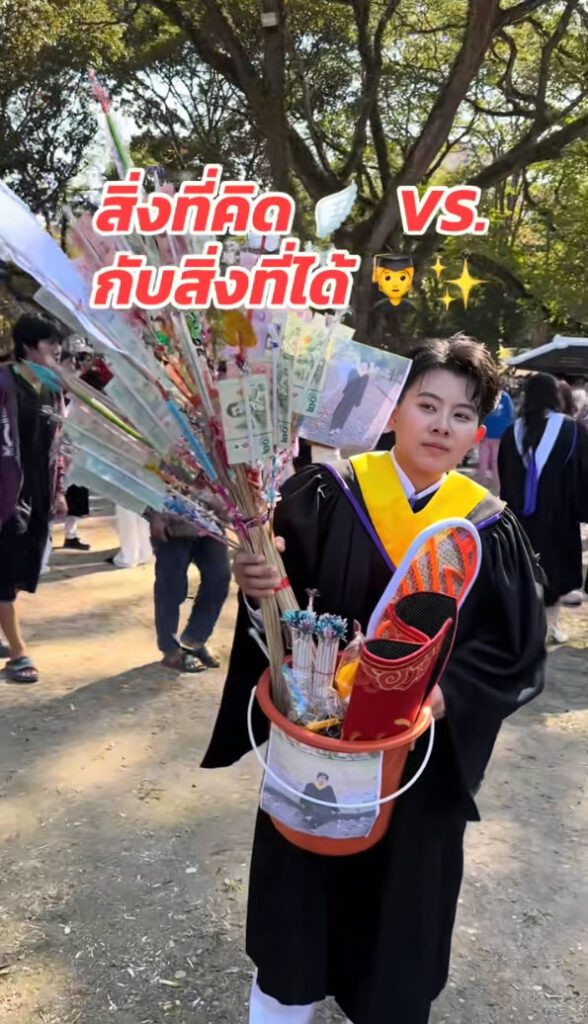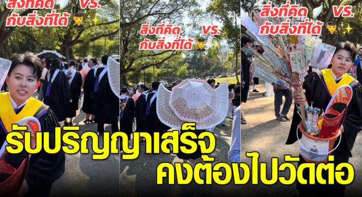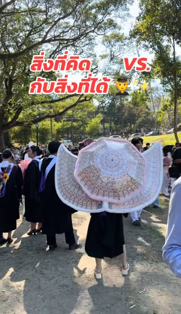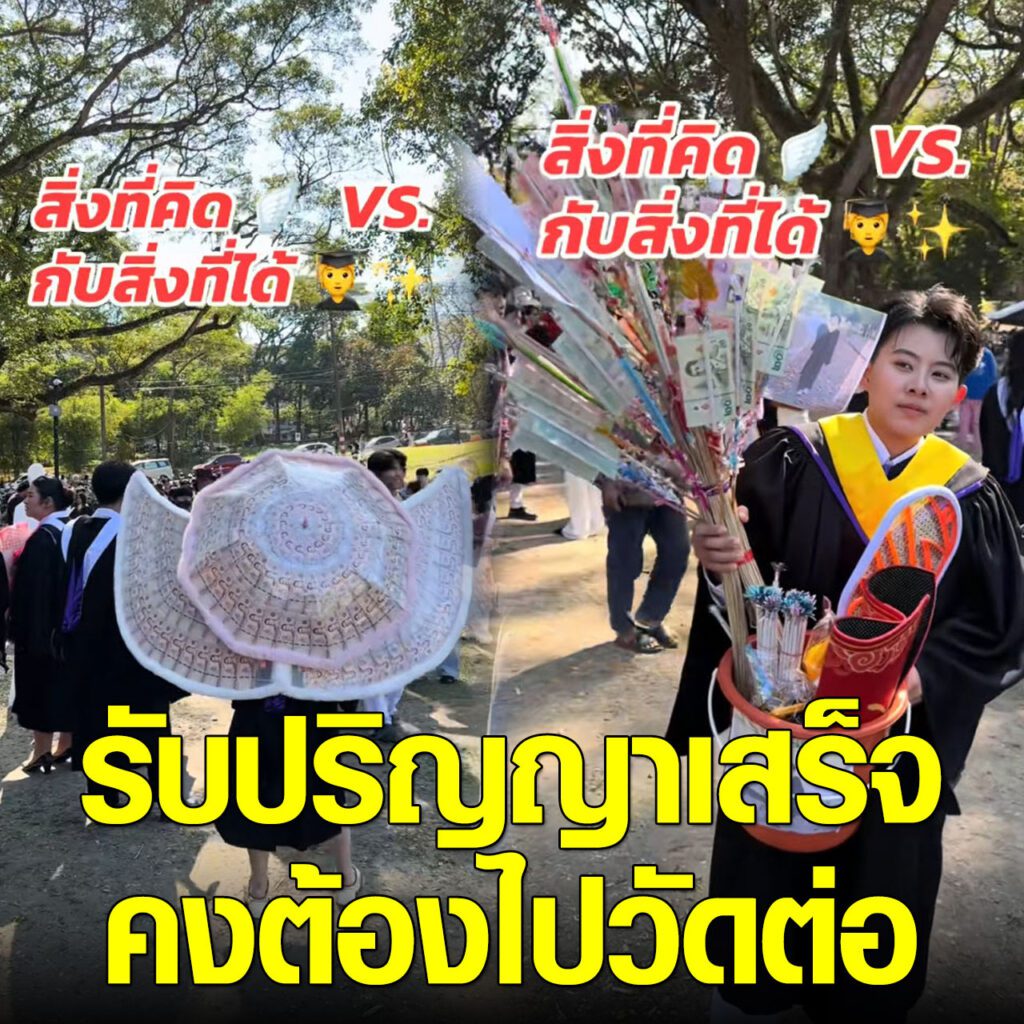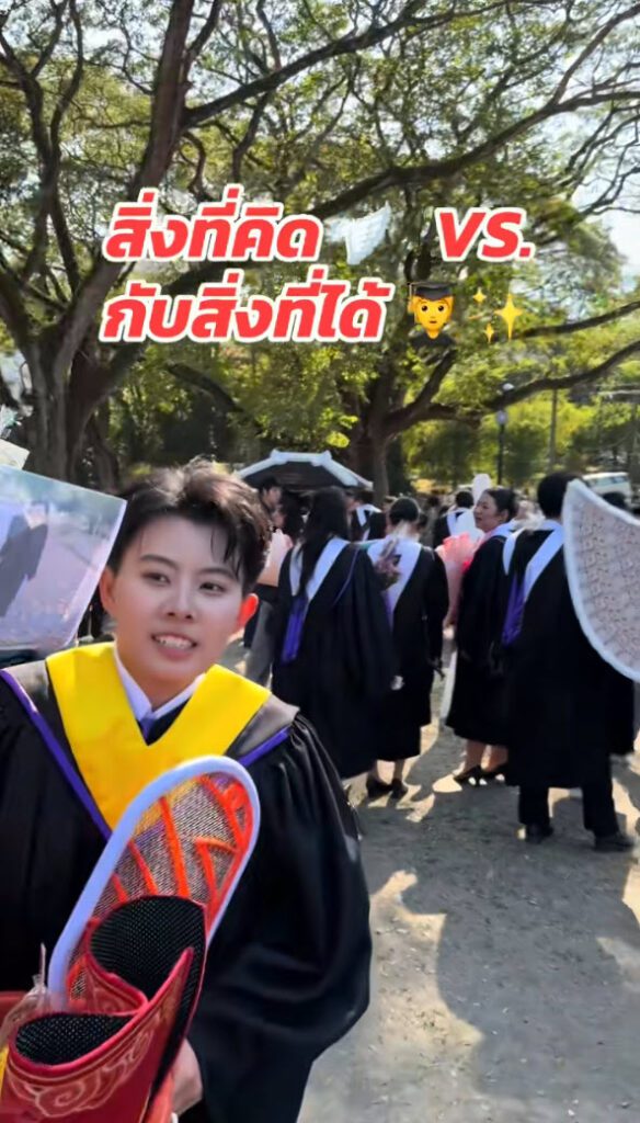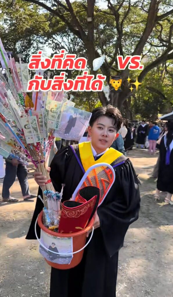 ล่าสุด ทางด้านผู้ใช้ TikTok @khunyingli ได้โพสต์คลิปวิดีโอ เมื่อวันรับปริญญามาถึงภาพที่คิดคือได้ดอกไม้เงินช่อทำเป็นรูปนก ร่ม หรือรูปทรงต่าง ๆ อย่างอลังการ ถ่ายรูปออกมาสวยๆ แต่ความเป็นจริงสิ่งที่ได้ ชาวเน็ตเห็นแล้วฮากันลั่นเลย รับปริญญาเสร็จเข้าวัดทำบุญเลย เป็นยังไงนั้นตามไปดู