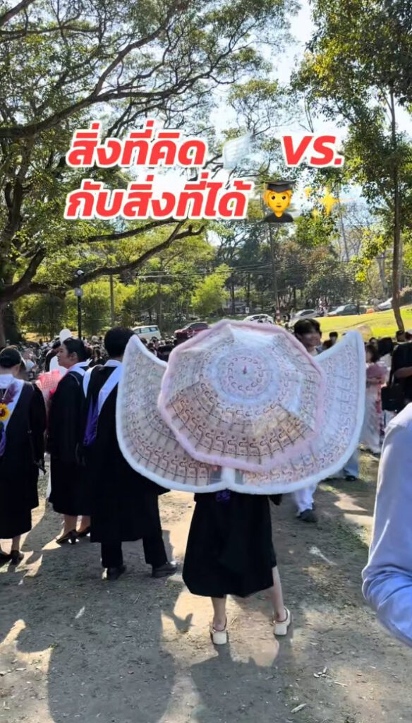 สิ่งที่คิดไว้กับสิ่งที่ได้มันช่างต่างกัน ฮาๆ คนที่ทำมาให้ก็ช่างคิด ลองถือเดินรอบๆ มหาลัยสักรอบ อาจจะได้เงินเพิ่มก็ได้นะ ฮาๆ รับปริญญาเสร็จแล้ว เข้าวัดทำบุญต่อกันเลย