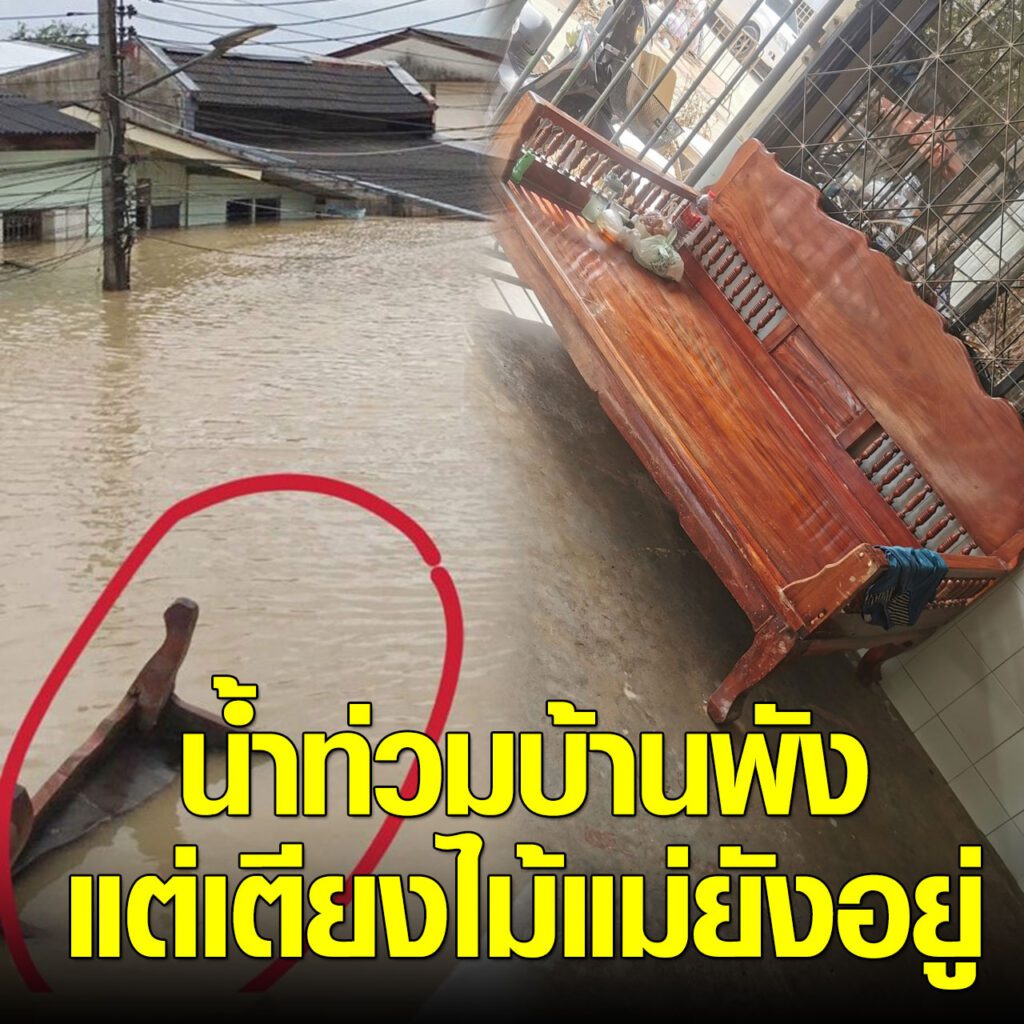 แต่ล่าสุด (6 ธันวาคม 2568) ผู้ใช้เฟซบุ๊กชื่อ ฟั้งกี้ ฮิปฮอปช้อป ได้โพสต์ภาพก่อน–หลัง น้ำท่วมหาดใหญ่ลงในกลุ่ม งานบ้านที่รัก ทำให้ชาวเน็ตฮือฮา เพราะในขณะที่หลายอย่างในบ้านเสียหายไปกับน้ำท่วมกลับมีสิ่งหนึ่งที่แทบไม่เปลี่ยนแปลงเลย นั่นคือ เตียงไม้ของแม่ จากภาพจะเห็นว่า ระดับน้ำสูงจนท่วมถึงชั้น 2 ทำให้เตียงไม้ลอยเอียงขึ้นมาข้างหนึ่ง ขาเตียงลอยอยู่เหนือระดับน้ำแบบชัดเจน แต่เมื่อระดับน้ำลดลงกลับพบว่า เตียงไม้ยังคงอยู่ในสภาพแข็งแรง แทบไม่มีร่องรอยความเสียหายจากน้ำท่วมเลยแม้แต่น้อย เจ้าของโพสต์ยังเขียนด้วยว่า….
