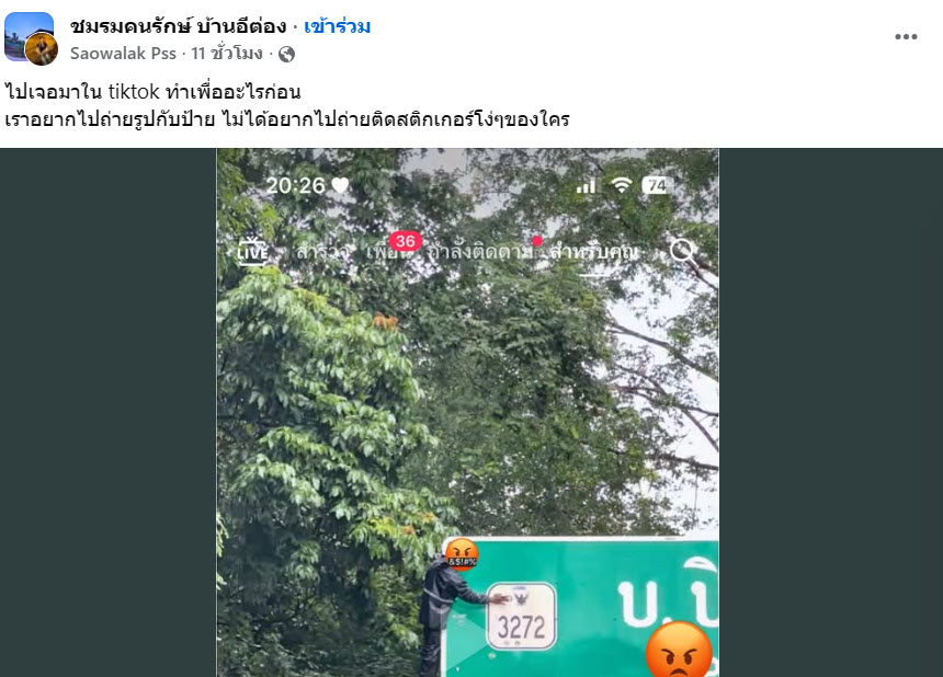 ล่าสุด ทางด้านผู้ใช้เฟสบุ๊ก Saowalak Pss ได้โพสต์ภาพที่เจอมาใน TikTok ซึ่งเป็นพฤติกรรมของวัยรุ่นสองล้อที่ขึ้นไปติดสติ๊กเกอร์บนป้ายบอกทางบ้านปิล็อก กาญจนบุรี โดยได้โพสต์ระบุว่า…