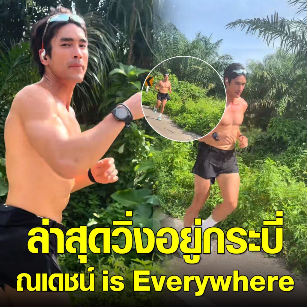 พระเอกขวัญใจมหาชนกำลังวิ่งออกกำลังกายอยู่แบบชิลๆ เจ้าตัวบอกสั้นๆ ว่าวิ่งมาจากกองถ่ายภาพยนตร์ ไม่ต้องโปรโมต ไม่ต้องจัดไฟ ยังเท่ได้เหมือนเดิมทุกองศา เรียกได้ว่าสมกับเป็นตำนาน ณเดชน์ is Everywhere ของแท้ จะเหนือ ใต้ ออก ตก โผล่ได้ทุกพิกัดในประเทศไทยจริงๆ